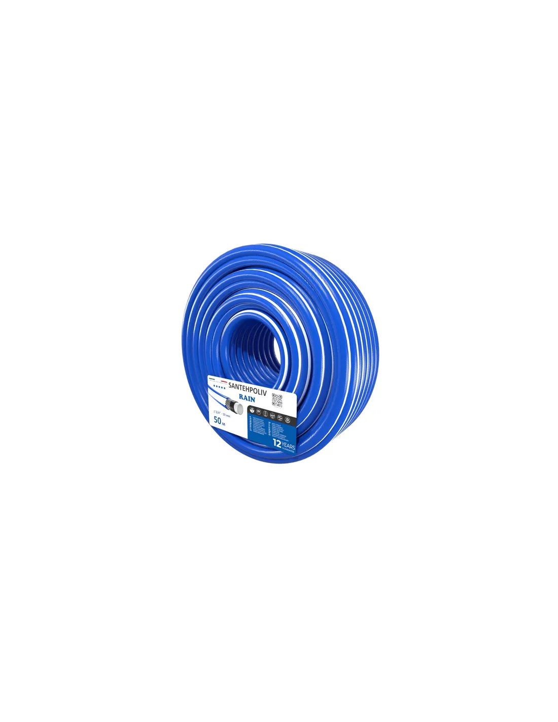 Шланг для поливу SantehPoliv RAIN 3/4 дюйма, 50 метрів, армований призначений та використовується для поливу саду та городу, а також для догляду за присадибною ділянкою. Шланг 4-шаровий армований, виготовлений із ПВХ. Надійний та якісний поливальний шланг, який прослужить довгі роки. Представлений у синьому кольорі. Робочий тиск: 12 бар. Діаметр загальний – 3/4 дюйми або 19 мм. Робоча температура: від -20 до 60 градусів за Цельсієм. На сайті вказана ціна за погонний метр. Довжина шлангу: 50 метрів. Гарантія – 12 місяців. Країна-виробник - Україна.