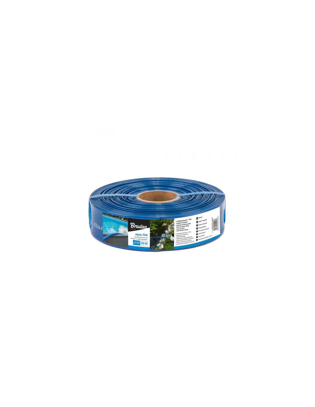 Шланг плоский Bradas Aqua-Flat, PE/EVA 1 1/4 дюйма, 20 метрів - призначений та використовується для перекачування/відкачування брудної та чистої води. Шланг ідеально підходить для використання з електричними та паливними мотопомпами. Може використовуватись із занурювальними насосами. Шланг виготовлений із високоякісного м`якого ПВХ. Представлений у синьому кольорі. Робочий тиск: 1 бар. Діаметр загальний – 1 1/4 дюйми або 32 мм. Гарантія – 12 місяців. Країна-виробник - Польща.