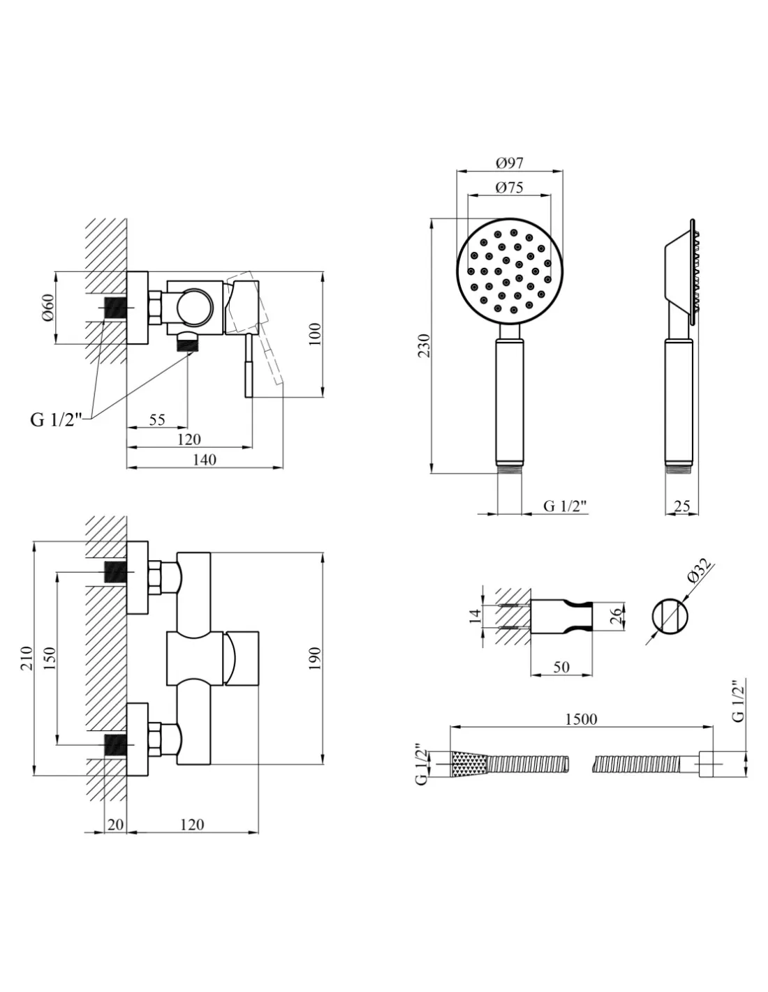 Комплектация смесителя для душа Kroner KRP Edelstahl Klassisch - ESG050: