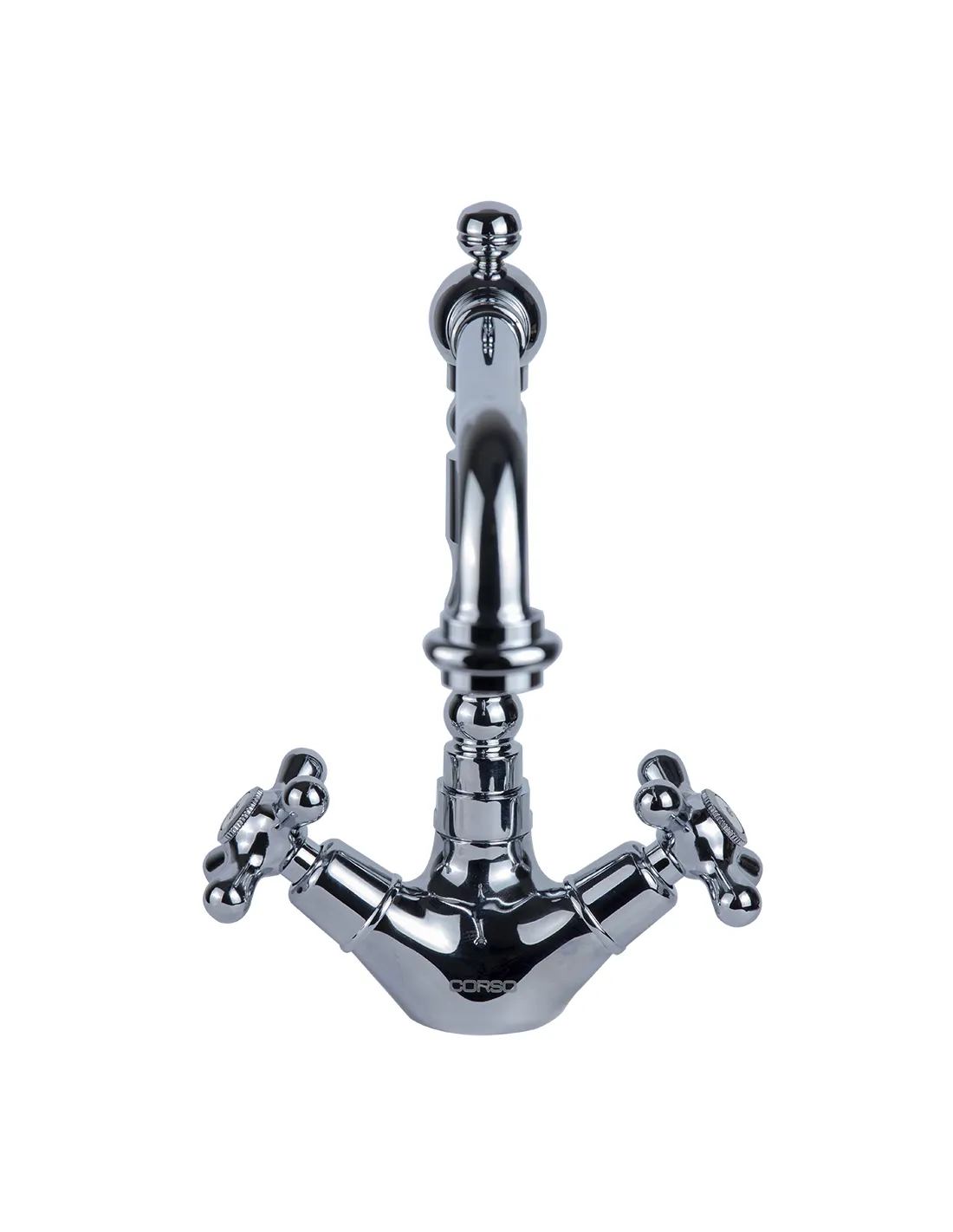 Смеситель для кухни двухвентильный Corso Arno гармонично впишется в интерьер каждой кухни. Предназначен для подвода на кран горячей и холодной воды, смешивания её и подачу с нужным напором потребителю. Конструктивные особенности в двух вентильном управлении смесителем. Смеситель модели Arno выполнен по всем технологиям и стандартам из латуни. Механизм смешивания воды через уран-буксу. Кран-букса из высококачественного материала обеспечит долговечность службы благодаря высокому ресурсу. Даже если в водопроводной системе резко повысится давление, букса выдержит нагрузку. При переключении и плавном регулировании силы напора воды не создает лишнего шума.