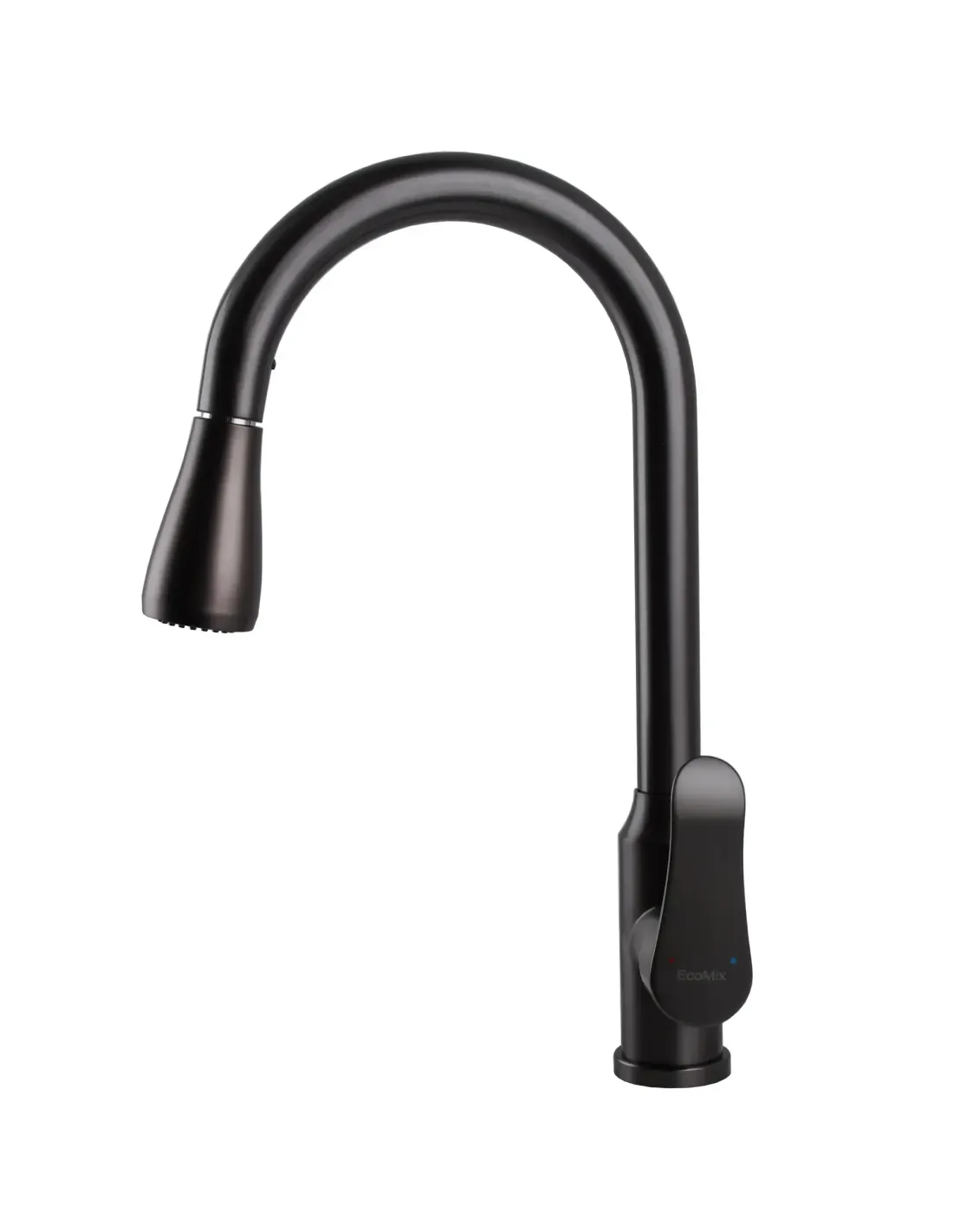 Смеситель для кухни Ecomix Stella гармонично впишется в интерьер каждой кухни. Предназначен для подвода на кран горячей и холодной воды, смешивания её и подачу с нужным напором пользователю. Конструктивные особенности в однорычажном управлении и душевой насадке. Смеситель выполнен по всем технологиям и стандартам из нержавеющей стали. Механизм смешивания - картридж, диаметром 35 мм. Картридж из высококачественного материала обеспечит долговечность службы благодаря высокому ресурсу пластин. Даже если в водопроводной системе резко повысится давление, картридж выдержит нагрузку. При переключении и плавном регулировании силы напора воды не создает лишнего шума.