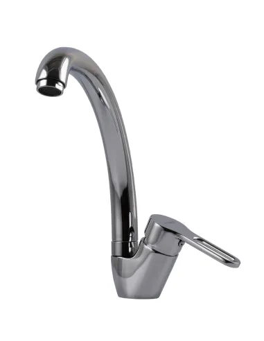 Тип кухонного смесителя – однорычажный, оснащен поворотным изливом, длина излива - 19 см, высота излива 18 см. Рабочее давление до 3 Бар, расход воды до 13 л/мин. Излив вращается на 360 градусов, что позволяет его использовать для кухонных моек с двумя или тремя чашами.