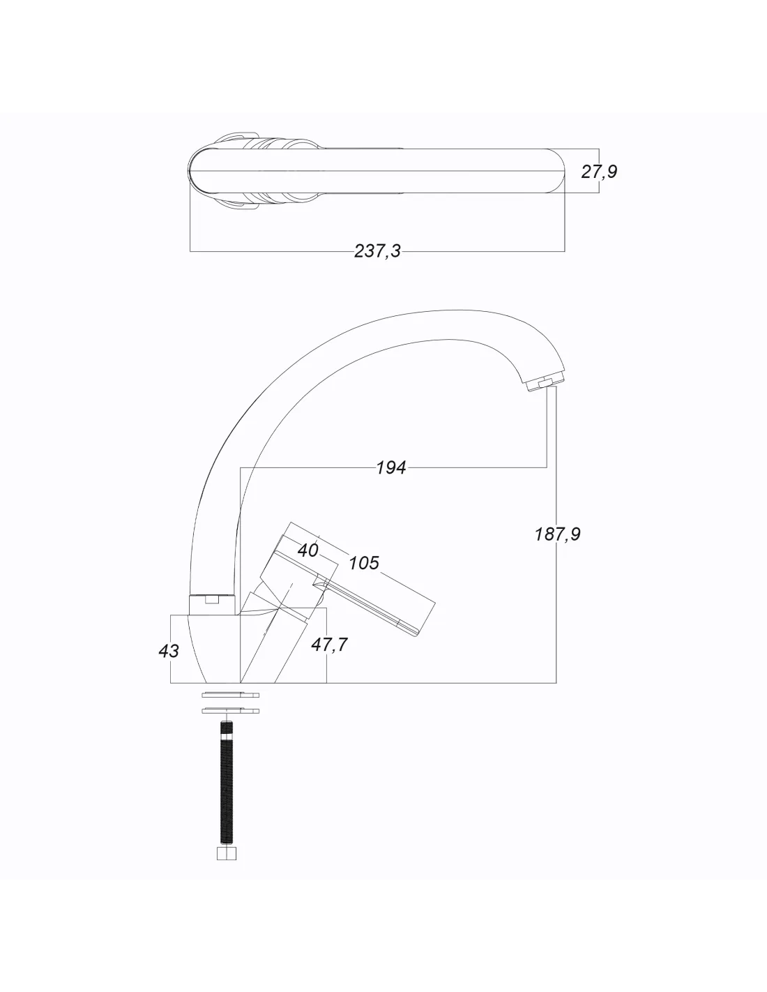 - Длина излива: 194 мм,