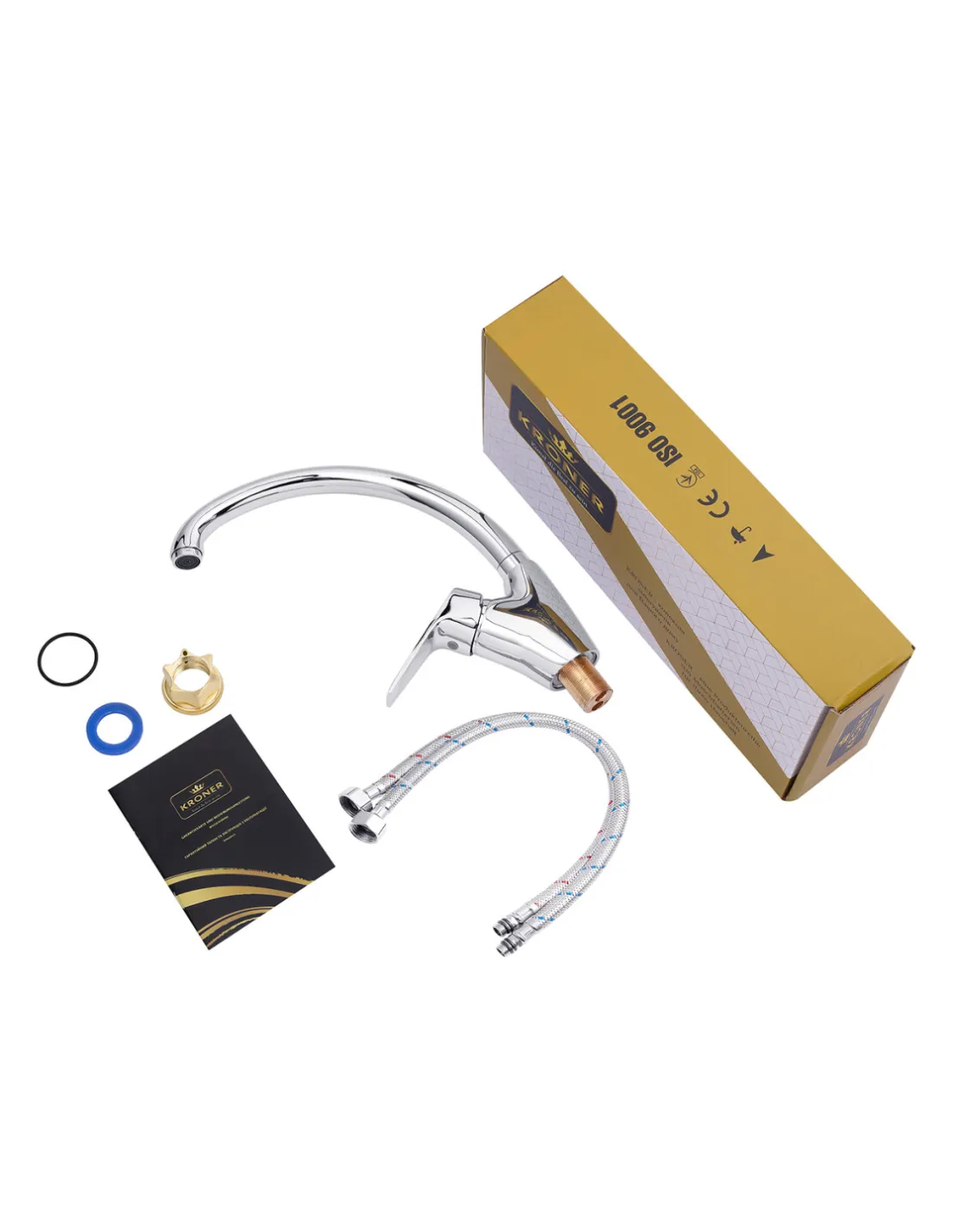 Смеситель для кухни Kroner KRM Odra - C034 гармонично впишется в интерьер каждой кухни. Предназначен для подвода на кран горячей и холодной воды, смешивания её и подачу с нужным напором пользователю. Конструктивные особенности в однорычажном управлении и креплении его гайкой. Смеситель выполнен по всем технологиям и стандартам из силумина. Механизм смешивания - картридж, диаметром 40 мм. Картридж из высококачественного материала обеспечит долговечность службы благодаря высокому ресурсу пластин. Даже если в водопроводной системе резко повысится давление, картридж выдержит нагрузку. При переключении и плавном регулировании силы напора воды не создает лишнего шума.