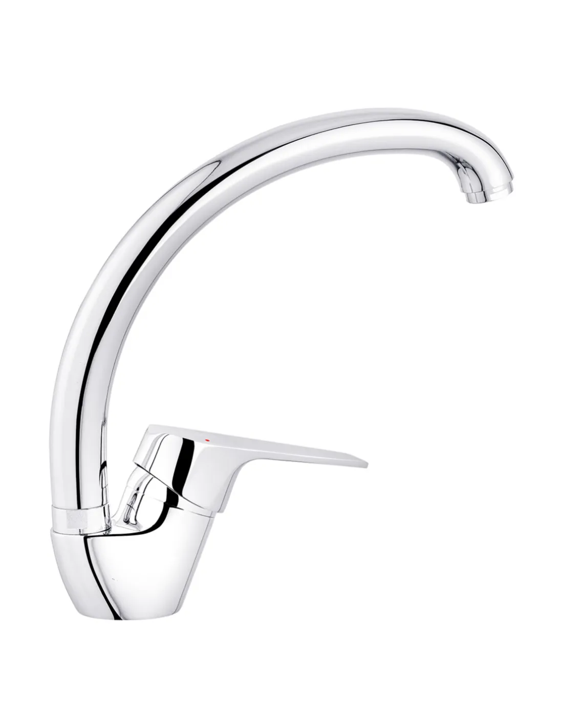Тип кухонного смесителя – однорычажный, оснащен поворотным С-образным изливом, длина излива – 23 см, высота излива 17,5 см. Рабочее давление до 3 Бар, расход воды до 13 л/мин. Излив вращается на 360 градусов, что позволяет его использовать для кухонных моек с двумя или тремя чашами.