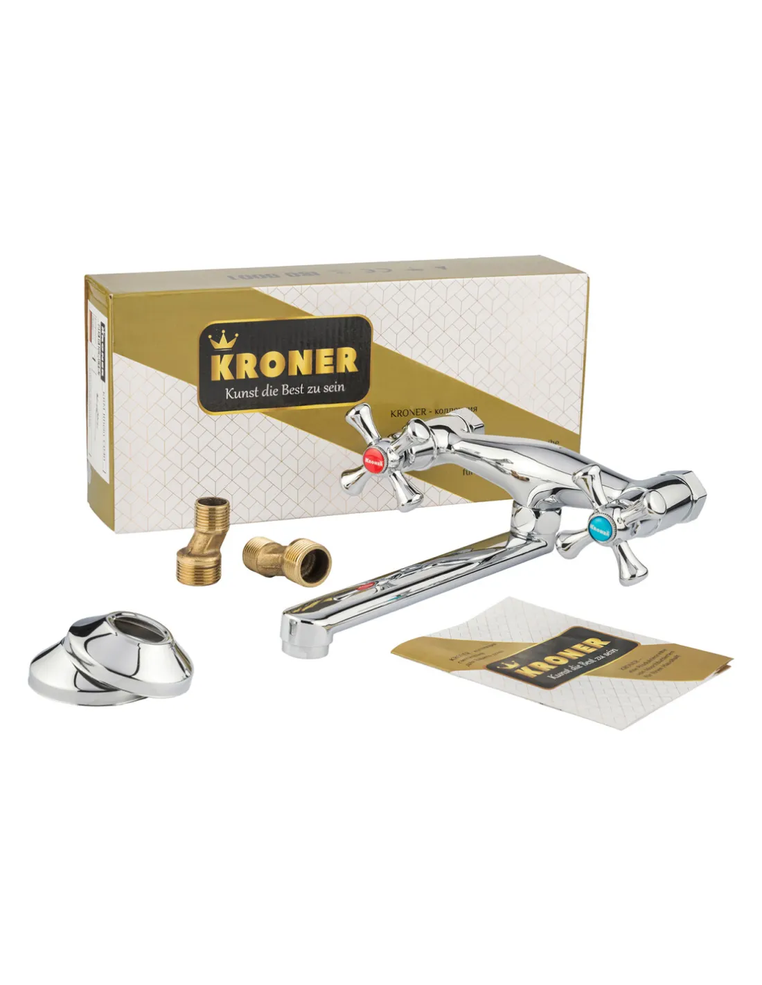 Смеситель для кухни настенный Kroner KRM Rhein - C040 двухвентильный предназначен для подачи воды при помощи регуляторов - вентилей. Используется на кухне. Устанавливается на стену над кухонной мойкой или столешницей. Материал изделия крана - силумин. Изготовлен в классическом стиле, в цвете хром с глянцевой поверхностью. Монтаж смесителя - на стену, при помощи эксцентриков. Тип подключения к водопроводу - жесткие подводимые шланги. Оснащен двумя полуоборотными вентилями для регулировки напора и температуры воды. Гарантия: 36 месяцев. Страна производитель: Германия.