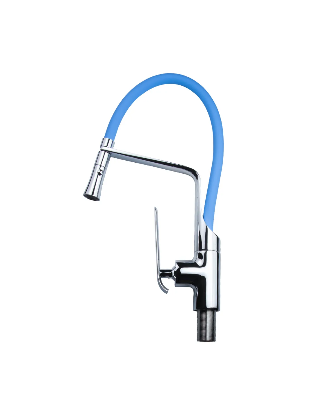 Тип кухонного смесителя – однорычажный, оснащен поворотным гибким изливом синего цвета, благодаря чему повышается функциональность и удобство использования крана. Рабочее давление до 3 Бар, расход воды до 13 л/мин. Излив гнется под удобным углом, что позволяет его использовать для кухонных моек с двумя или тремя чашами.