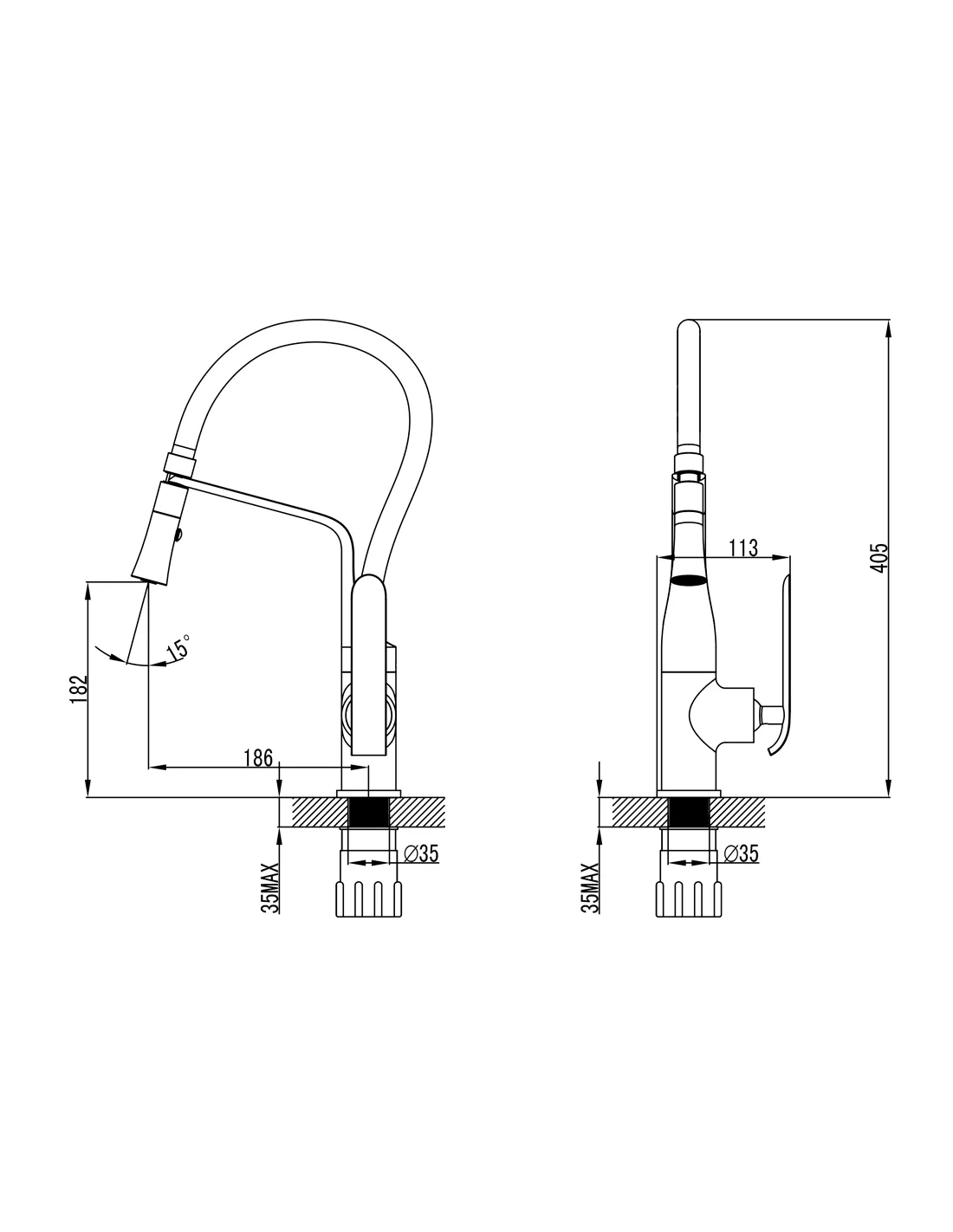 - Длина излива: 186 мм,