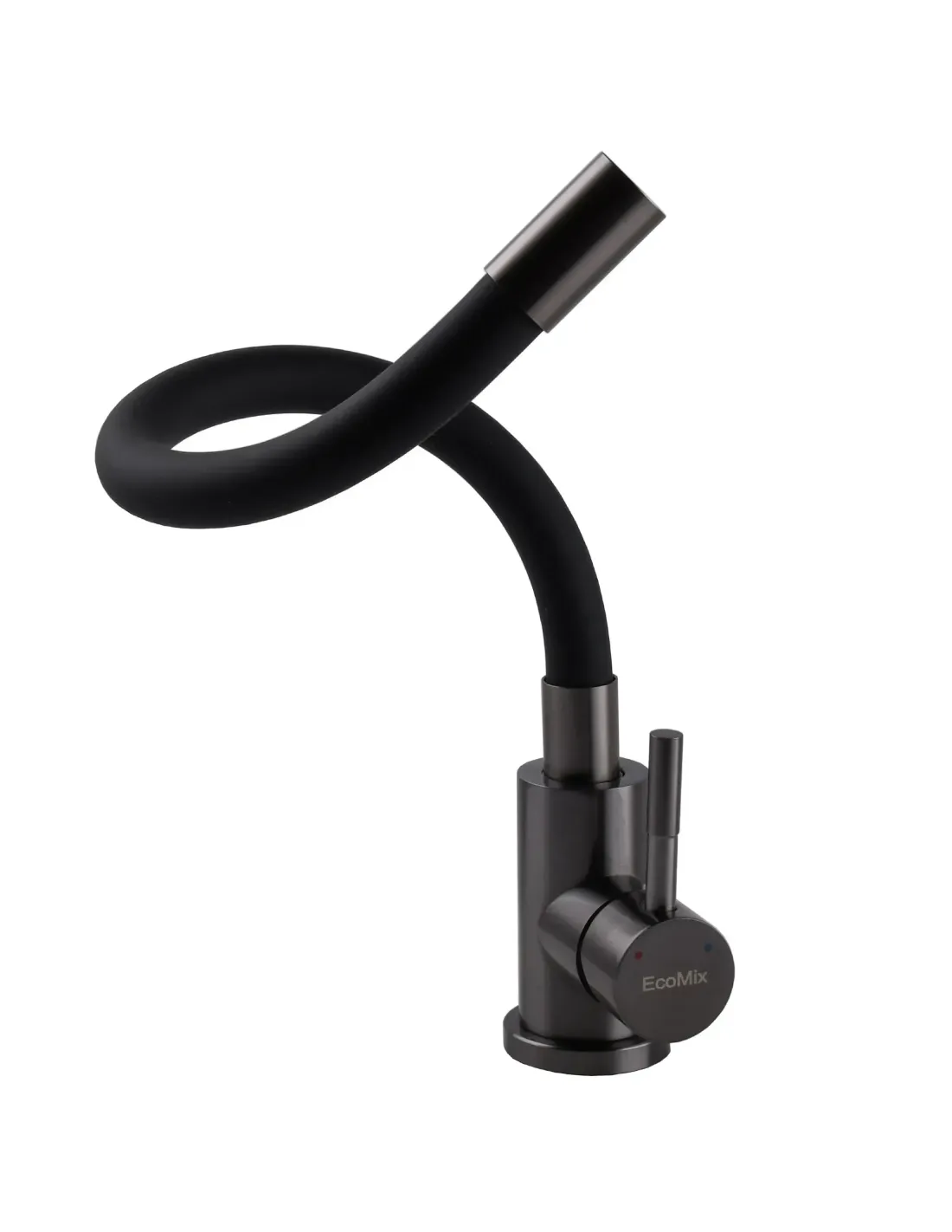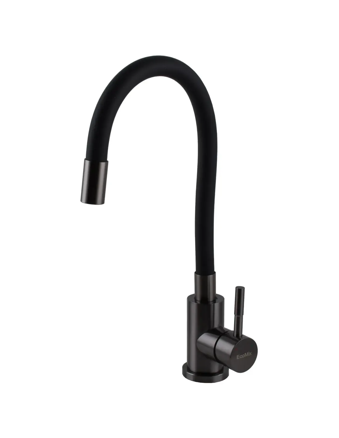 Смеситель для кухни Ecomix Stella гармонично впишется в интерьер каждой кухни. Предназначен для подвода на кран горячей и холодной воды, смешивания её и подачу с нужным напором пользователю. Конструктивные особенности крана в гибком изливе из качественной гофры. Смеситель выполнен по всем технологиям и стандартам из нержавеющей стали. Механизм смешивания - картридж, диаметром 35 мм. Картридж из высококачественного материала обеспечит долговечность службы благодаря высокому ресурсу пластин. Даже если в водопроводной системе резко повысится давление, картридж выдержит нагрузку. При переключении и плавном регулировании силы напора воды не создает лишнего шума.