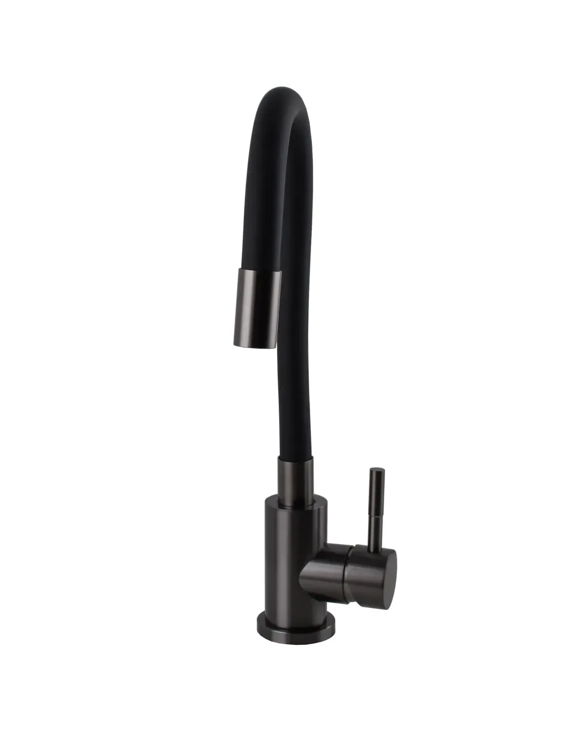 Тип кухонного смесителя – однорычажный, оснащен поворотным гибким изливом. Рабочее давление до 3 Бар, расход воды до 13 л/мин. Излив гнется под удобным углом, что позволяет его использовать для кухонных моек с двумя или тремя чашами.