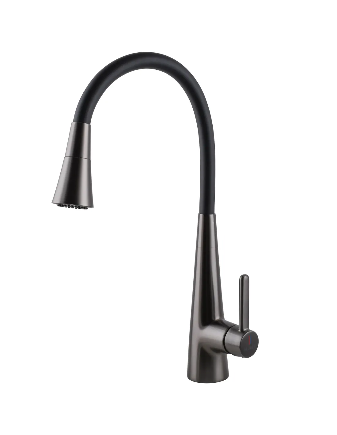 Смеситель для кухни с гибким изливом Globus Lux Lazer Pro GLPR-203SM-GP гармонично впишется в интерьер каждой кухни. Предназначен для подвода на кран горячей и холодной воды, смешивания её и подачу с нужным напором пользователю. Конструктивная особенность смесителя - черный гофроизлив и душевая насадка, что повышает его функционал при использовании. Подключение для питьевой воды обеспечивает удобный доступ к чистой воде, не требуя дополнительного крана. Смеситель выполнен по всем технологиям и стандартам из латуни. Механизм смешивания - картридж, диаметром 35 мм. Картридж из высококачественного материала обеспечит долговечность службы благодаря высокому ресурсу пластин. Даже если в водопроводной системе резко повысится давление, картридж выдержит нагрузку. При переключении и плавном регулировании силы напора воды не создает лишнего шума.