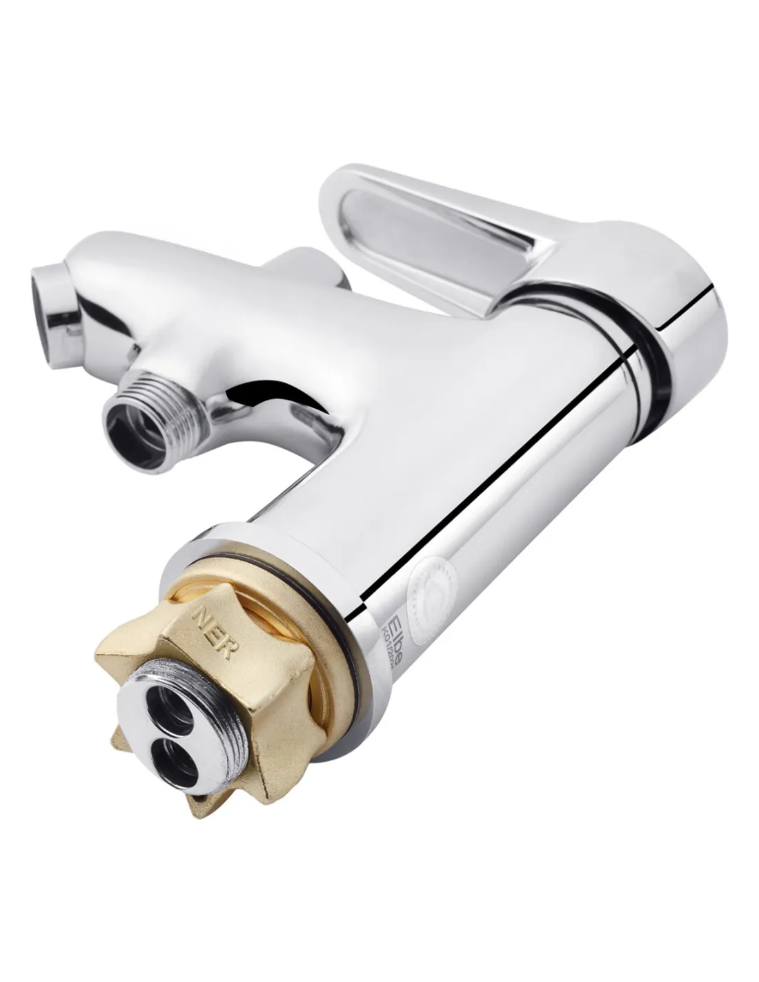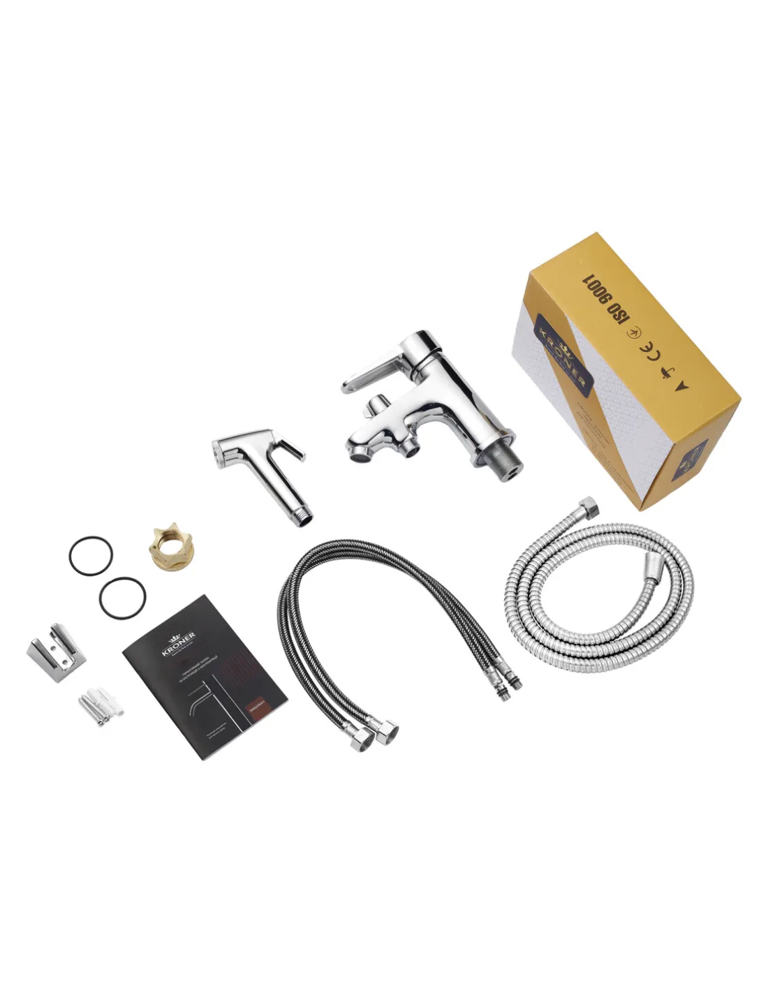 Смеситель для умывальника Kroner KRM Elbe - C015 хром с гигиеническим душем — это сочетание удобства, надежности и простоты использования в ванной комнате. Предназначен для смешивания горячей и холодной воды при помощи встроенного картриджа и подачи под выбранным напором на умывальник. Используется на умывальнике или раковине.
