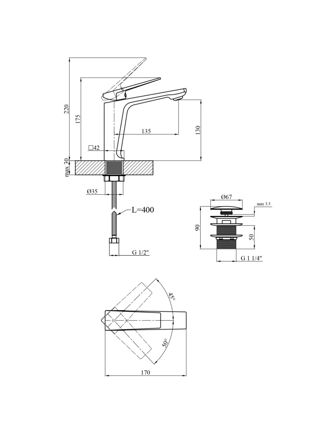Смеситель Kroner KRP Ersel - C0111BV имеет 2 входа для подключения: первый – для горячей воды, второй – для холодной воды. Смешивание воды происходит за счёт встроенного керамического картриджа при повороте рукоятки для настройки комфортной температуры и напора. Оснащён донным клапаном.