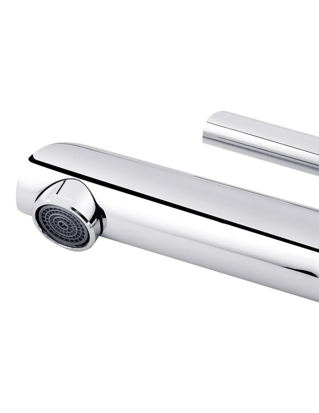 Смеситель Kroner KRP Essen - C010 имеет 2 входа для подключения: первый – для горячей воды, второй – для холодной воды. Смешивание воды происходит за счёт встроенного керамического картриджа при повороте рукоятки для настройки комфортной температуры и напора.