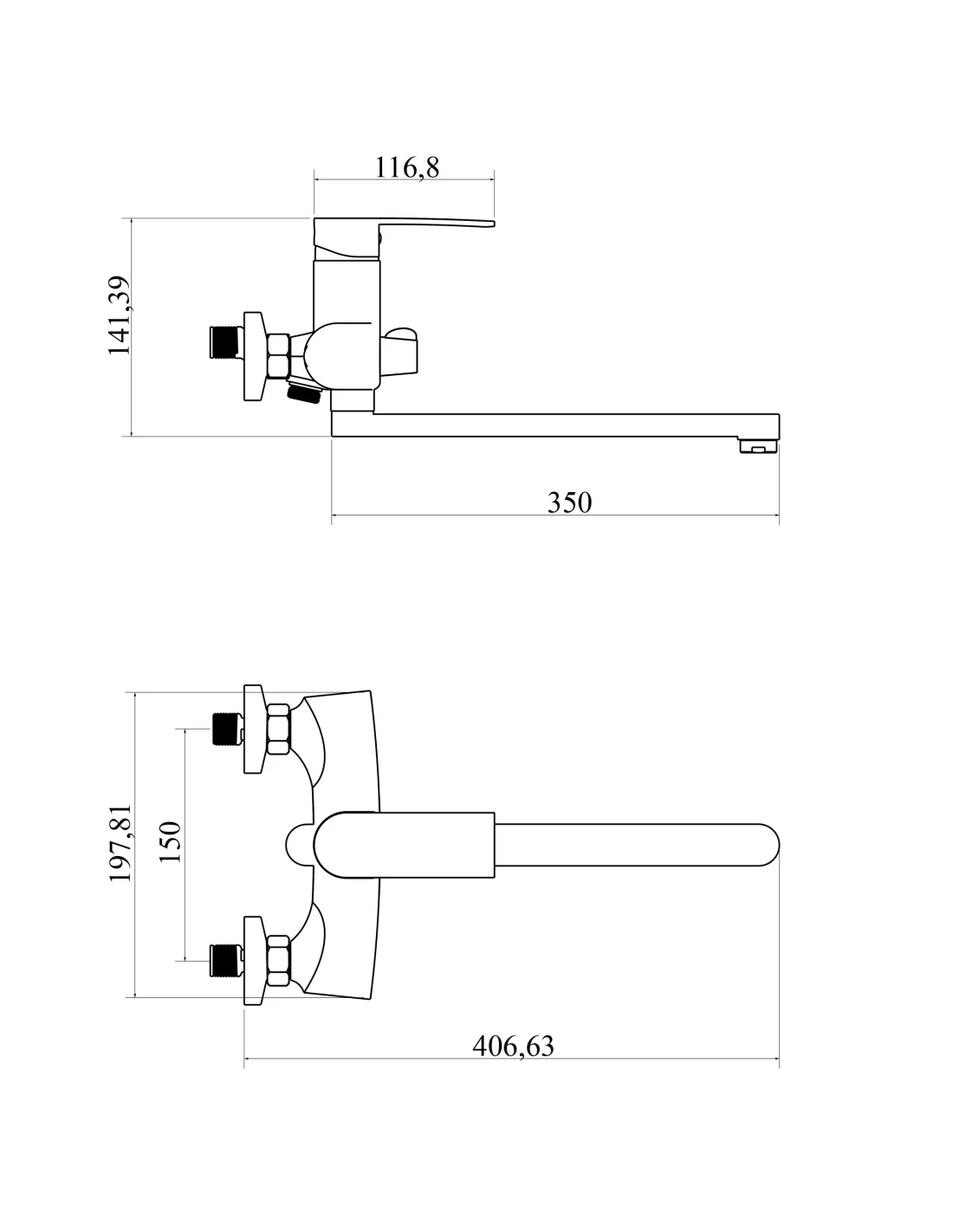- Длина излива: 350 мм,