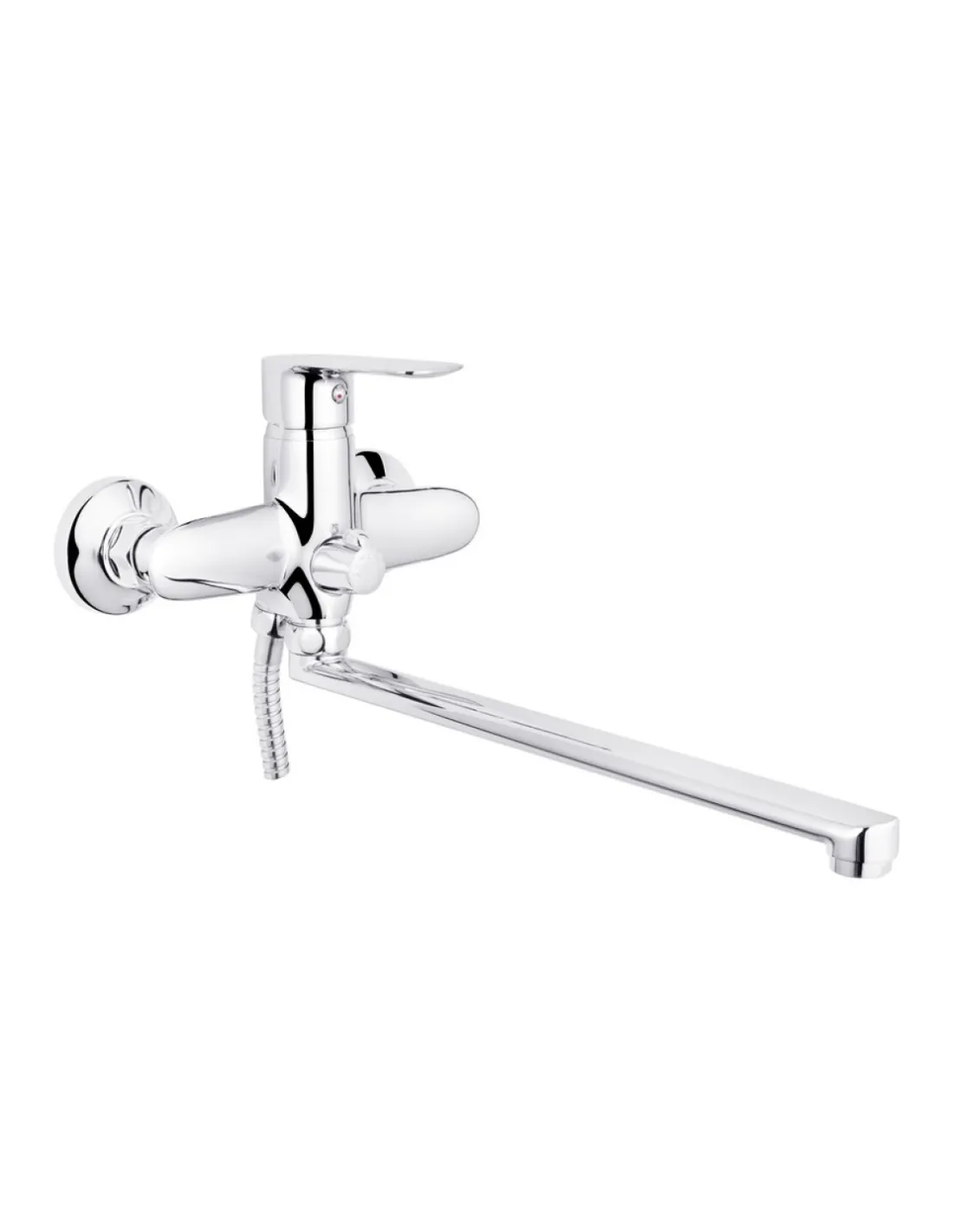 Смеситель для ванны Kroner KRM Main - C070 изготовлен из силумина. В процессе изготовления смесителя использованы современные технологии. Носик излива поворотный, что позволяет его использовать в ванной. На планке смесителя располагается переключатель, при повороте которого подача воды изменяет направление с крана на душевой шланг и лейку, что расширяет функциональность использования в ванной комнате.