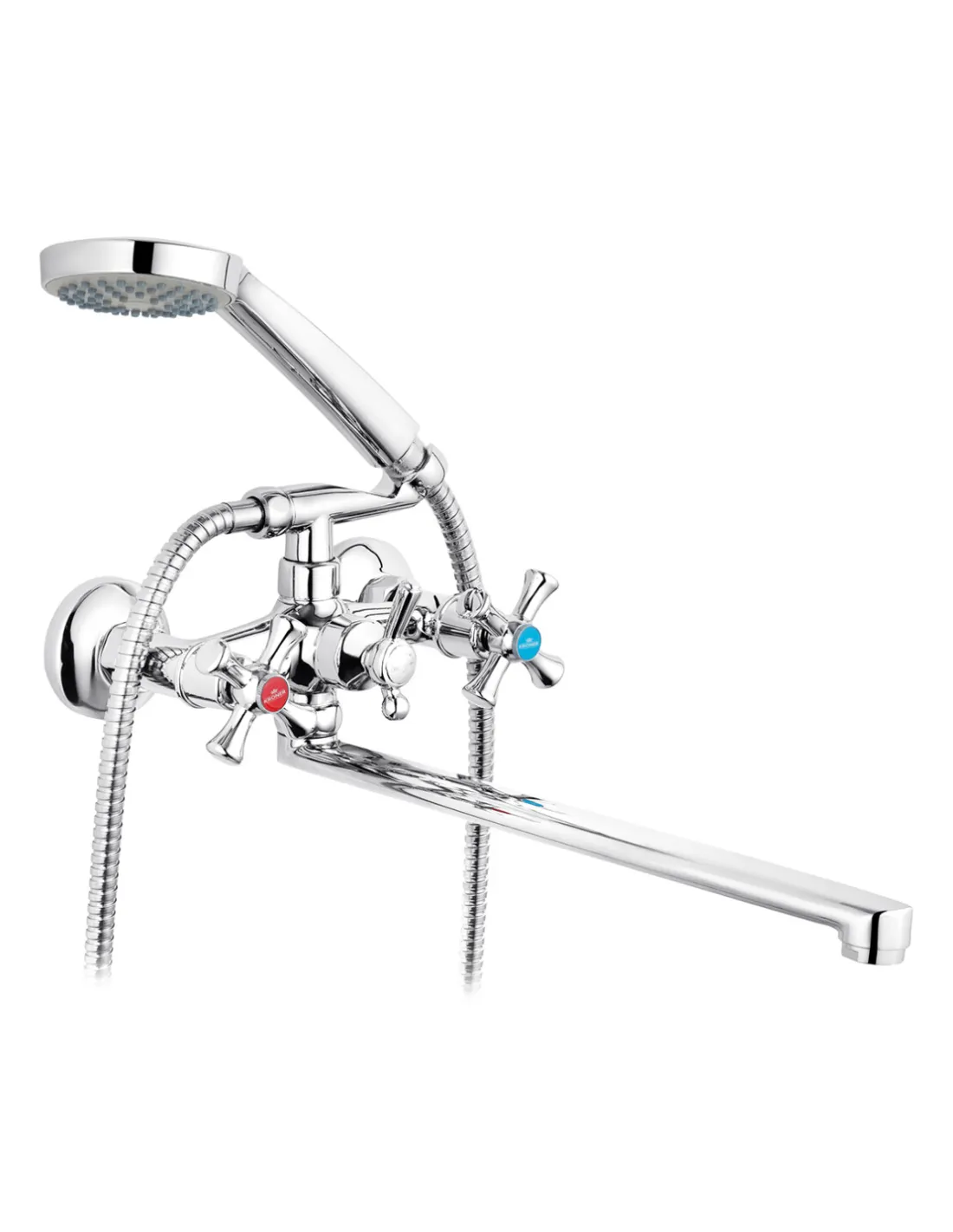 Смеситель для ванны Kroner KRM Rhein - C072 с душевым набором - это сочетание удобства, надежности и высокой функциональности при использовании в ванной комнате. Предназначен для регулировки температуры, напора воды и подачи её через кран или душевую ручную лейку.