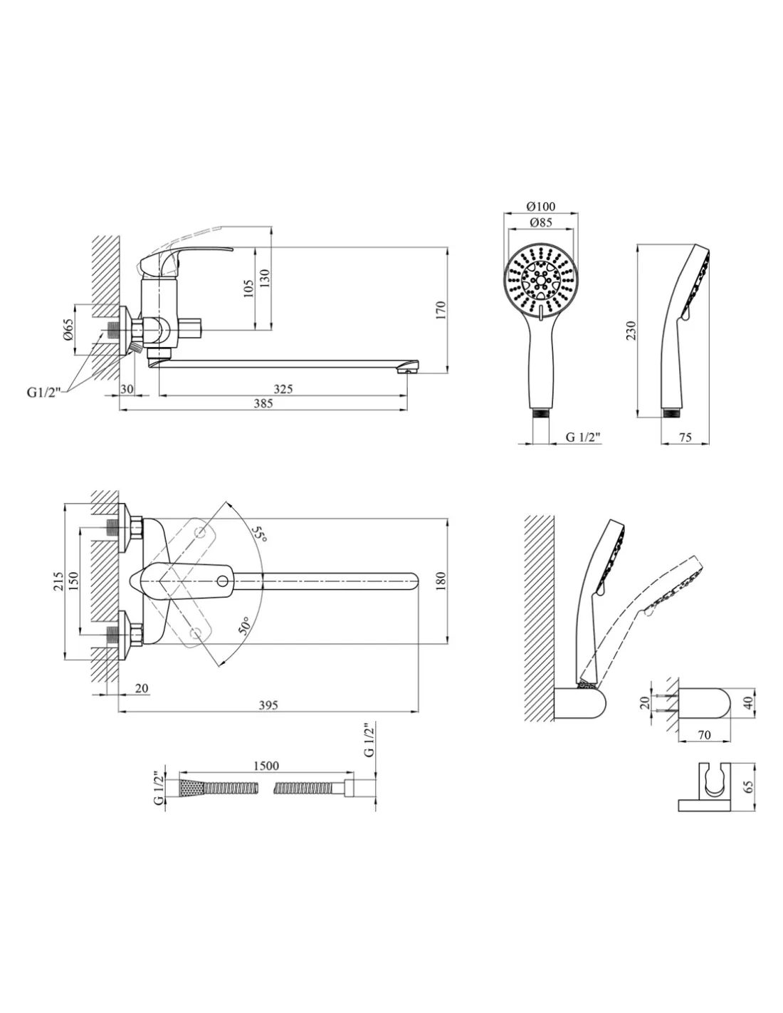 - Шланг душевой 1500 мм,