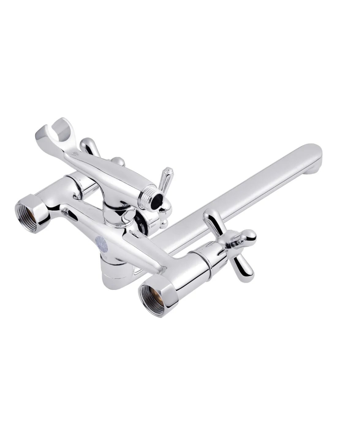 Смеситель для ванны Kroner KRP Royce - C072 с душевым набором - предназначен для регулировки температуры и подачи воды с установленным напором в ванной комнате. Используется в ванной комнате для ванны. Изготовлен из латуни, фактура поверхности - глянцевая. Кран имеет современный дизайн, прост в установке и использовании. Установка наружного типа, на стену с помощью эксцентриков. Смеситель оборудован вентильным механизмом с кран-буксой и евро переключателем воды с крана на душевую лейку, что подчеркивает его функциональность. Длина излива 330 мм. Излив поворотного типа, что позволяет его использовать и для ванной. В комплекте также поставляется душевой шланг длиной 1500 мм, ручная лейка диаметром 80 мм и кронштейн для ручного душа. Управление краном - вентильное. Тип подключения - жесткие подводы для воды. Гарантия на изделие 60 месяцев. Страна производитель - Германия.