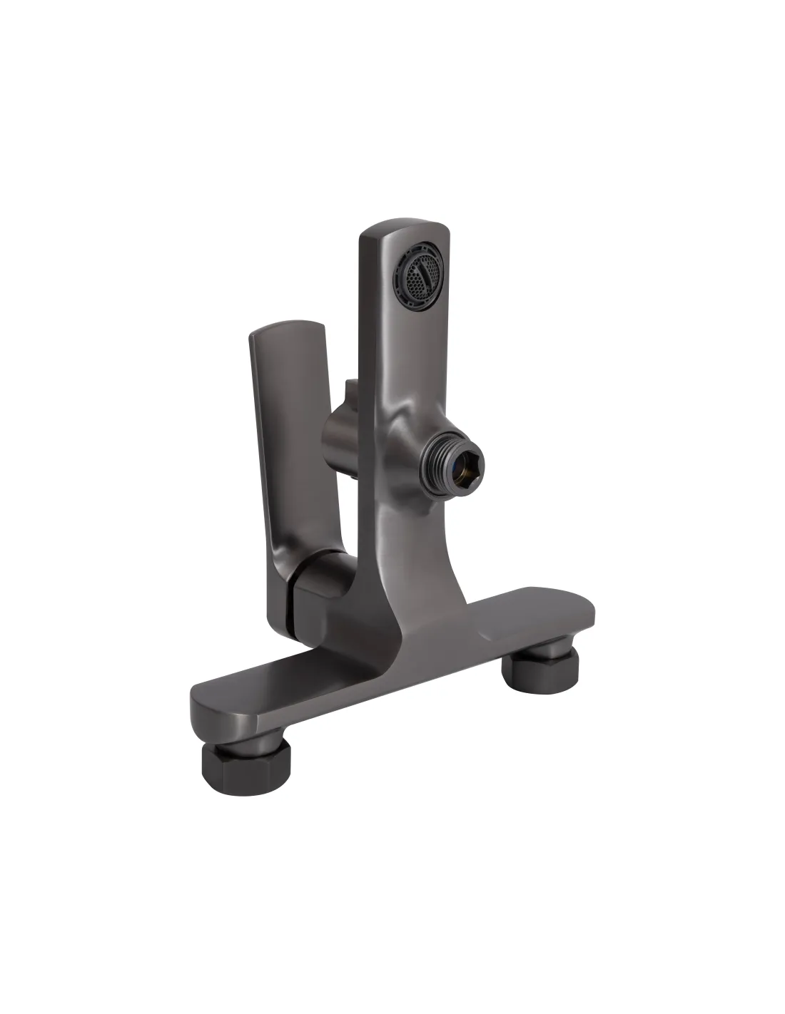 Смеситель для ванны Q-Tap Slavonice QTSLV259GMB48035 Gunmetal Black PVD имеет 2 входа для подключения. Первый вход для подключения горячей воды. Второй для подключения холодной воды. Смешивание горячей и холодной воды происходит за счет стандартного керамического картриджа с помощью рукоятки. Подача воды на кран и душевую лейку регулируется за счет переключателя. Подключение душевого шланга происходи снизу излива гусака, при помощи гайки на душевом шланге.