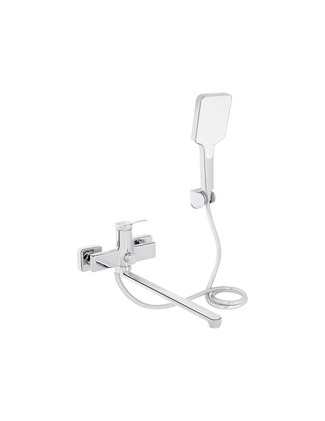 Смеситель для ванны изготовлен из латуни. В процессе изготовления смесителя использованы инновационные и экологически безопасные технологии производства. Излив длинный, поворотный - что позволяет использовать для ванной, душа и умывальника. На изливе смесителя располагается евро-переключатель, при нажиме на который подача воды изменяет направление с крана на душевой шланг и лейку, что расширяет его функциональность.