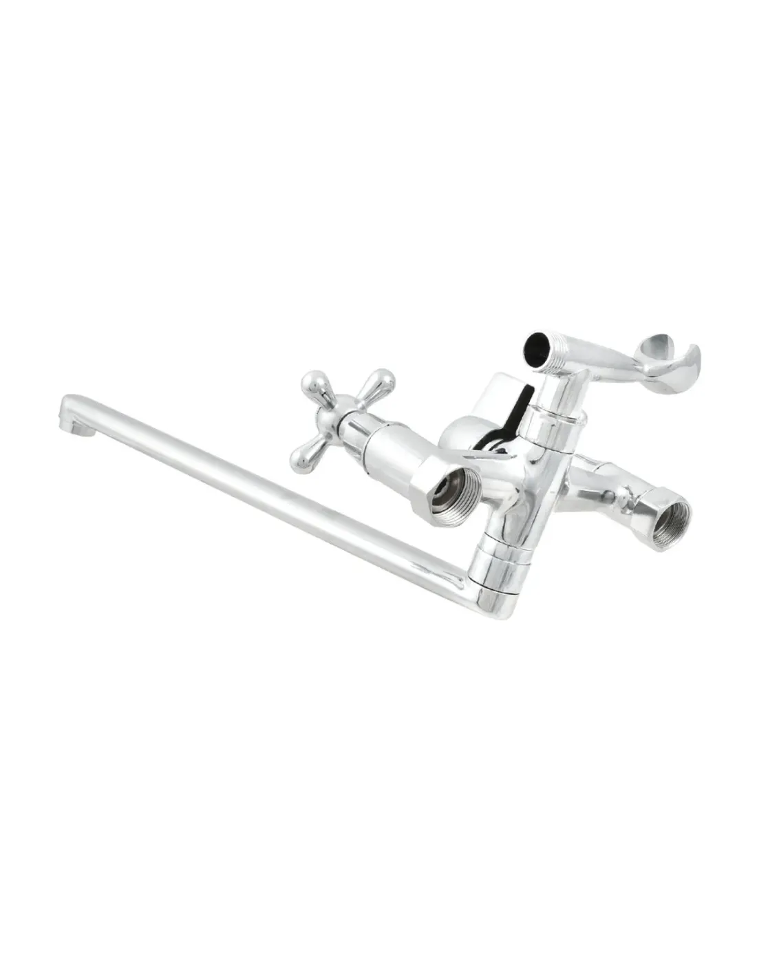 Смеситель для ванны изготовлен из латуни. В процессе изготовления смесителя использованы инновационные и экологически безопасные технологии производства. Излив длинный, поворотный - что является универсальностью при использовании. Может использоваться для ванной, душа и для умывальника. На планке смесителя располагается евро-переключатель, при повороте которым подача воды изменяет направление с крана на душевой шланг и лейку, что расширяет его функциональность.