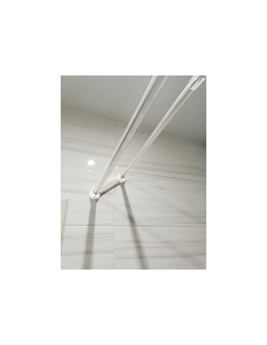Раздвижной механизм позволяет быстро установить штангу между противоположными стенами. За счет внутреннего пружинного или винтового фиксатора штанга надежно удерживается враспор, однако для компенсации веса мокрого полотенца и шторки в комплекте предусмотрены дополнительные точки опоры. Держатель для полотенец расположен параллельно основной штанге, что не препятствует движению колец занавески.