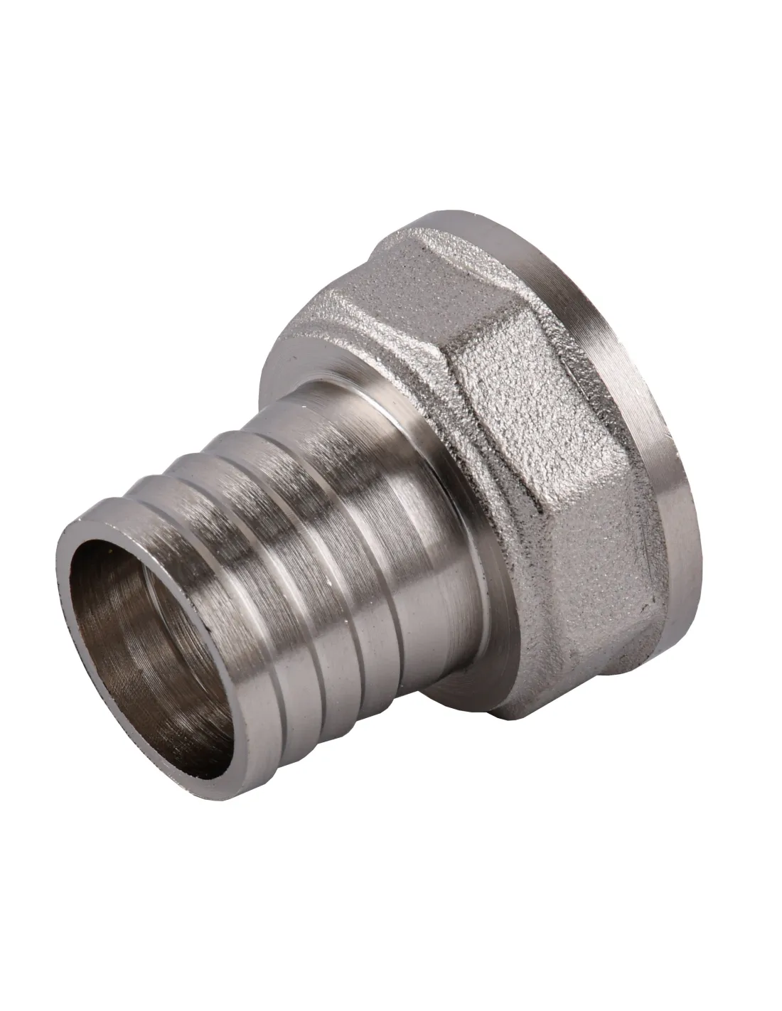 Штуцер нікельований Optimum NU5L1S забезпечує герметичний перехід з внутрішнього різьблення 1" на шланг 25 мм. служби.