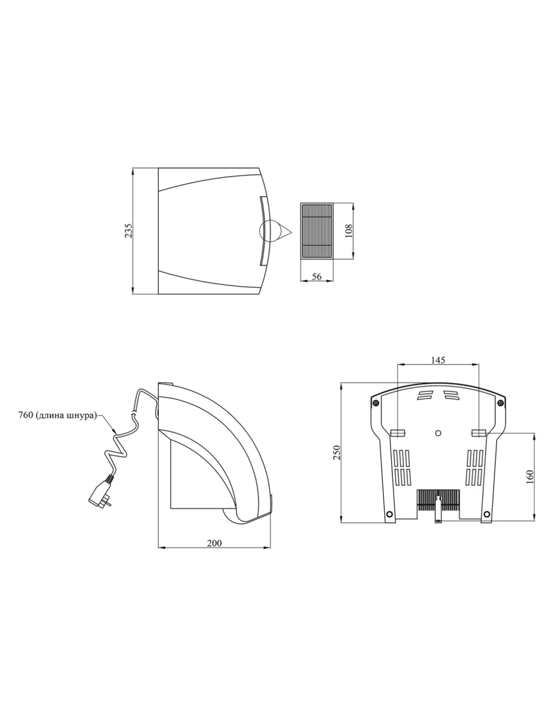 - Уровень защиты: IPX1;
