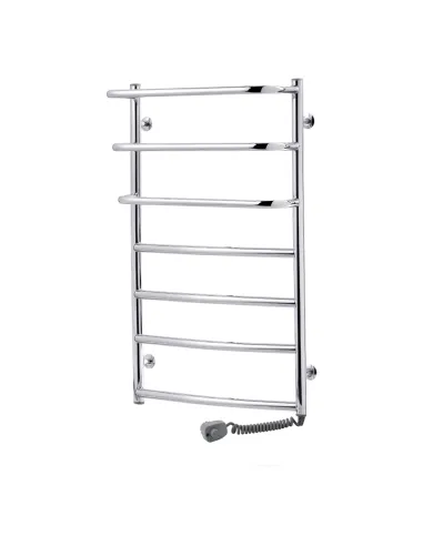 Електричний сушка для рушників Kroner Каскад дуга ДКД03ER 900x500/7 ER виконаний з нержавіючої сталі SUS301 з глянсовою поверхнею, оснащений ТЕН і вбудованим терморегулятором. Він швидко нагрівається та підтримує температуру до 60 градусів Цельсія. Підключення до мережі здійснюється через електричний провід з вилкою.