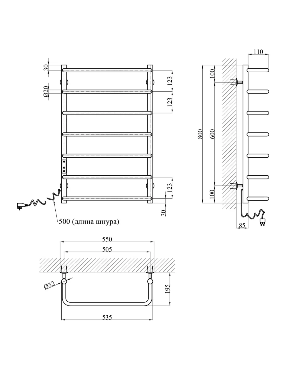 Сушка для рушників електрична Kroner KRP Stil EL800x500-7