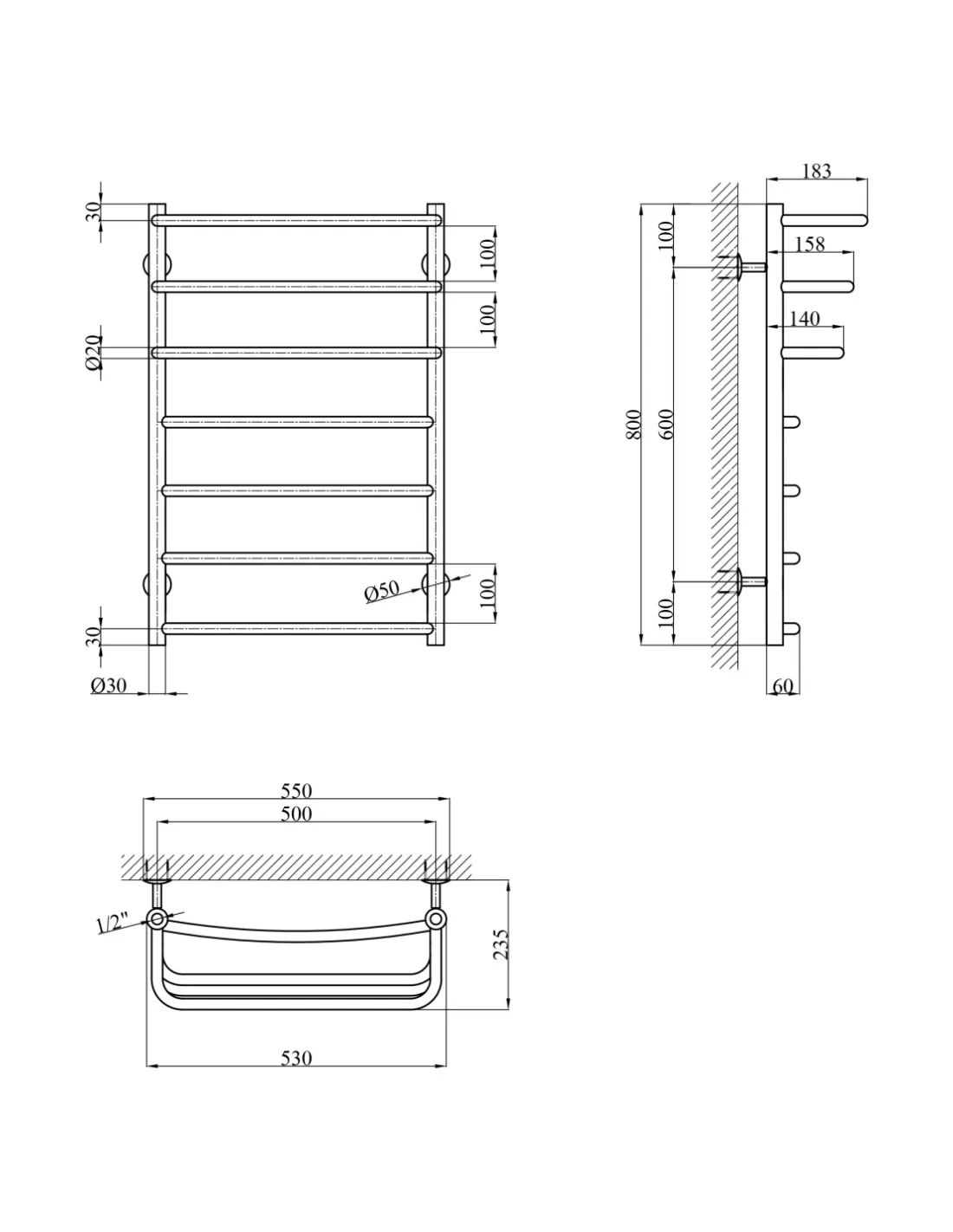 Сушка для рушників водяна Kroner KRP Prima WT800x500-7
