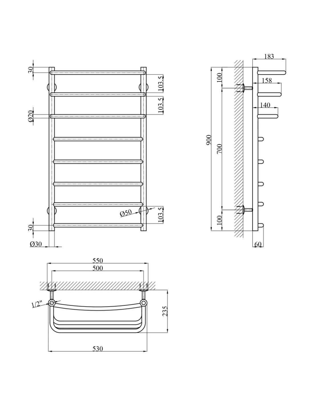 Переваги водяного сушки для рушників Kroner KRP Prima WT900x500-8: