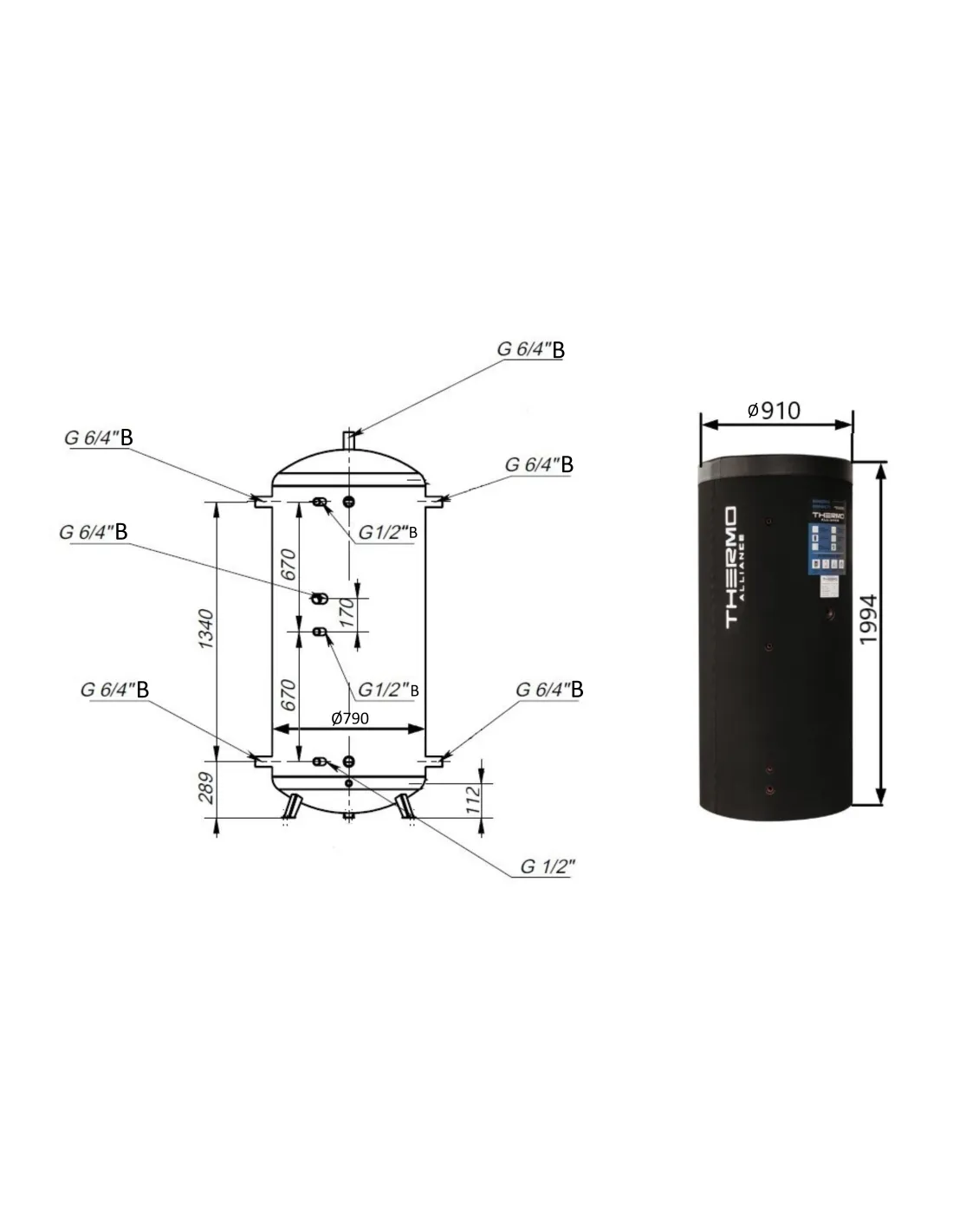 Теплоаккумулятор Thermo Alliance TA-ТАМ-00 предназначен для накопления, сохранения и передачи теплоносителя от источников непостоянного действия. Накапливает теплоноситель от газовых и твердотопливных котлов, теплонасосов, гелиоколлекторов и других источников работающих в одной системе. Диаметр подключения к системе отопления - 1 1/2 дюйма. Порт под ТЭН - 1 1/2 дюйма. Порт под термодатчик (рециркуляция) - 1/2 дюйма. Объем бака - 1000 литров. Полезный объем - 856 литров. Максимальная рабочая температура - 95 градусов по Цельсию. Максимальное рабочее давление - 3 Бар. Толщина теплоизоляции - 60 мм. Габариты (ВхШхГ): 1994х910х910 мм. Гарантия 60 месяцев. Страна производитель: Украина.