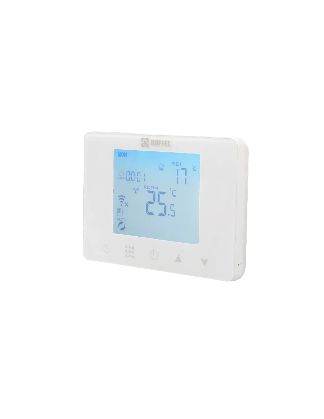 Терморегулятор бездротової для котлів Raftec R09RF - використовується для бездротового керування нагрівальними приладами. Його робота полягає у підтримці комфортних умов у приміщенні відповідно до графіка роботи або настроєної користувачем постійної температури. Один термостат (передавач), а інший – приймач, який керує котлом. Між двома блоками існує бездротовий (радіочастотний) зв`язок, тому немає необхідності прокладати провід між термостатом та котлом. Обидва блоки синхронізовані та працюють.
