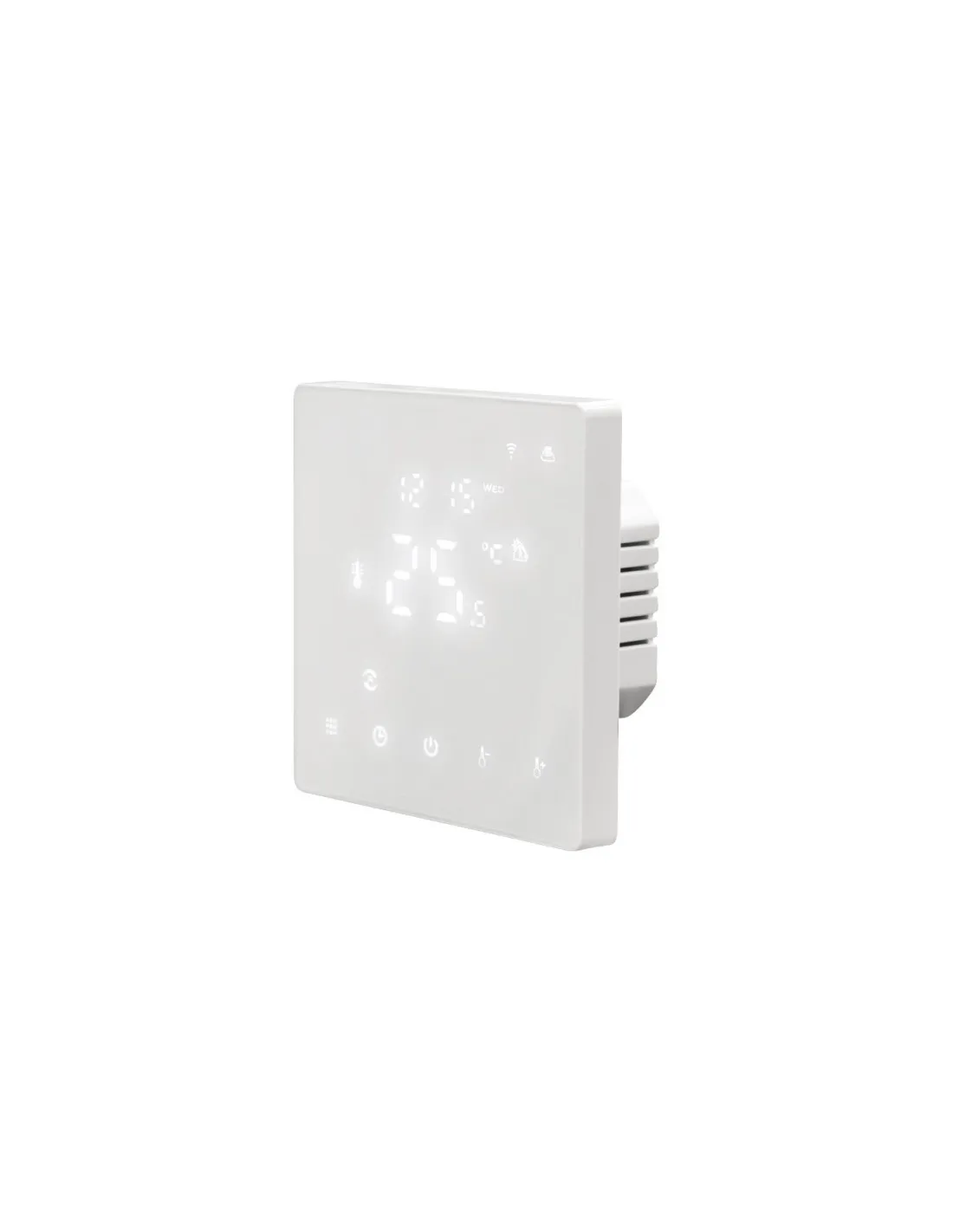 Терморегулятор для теплої підлоги Raftec R608W цифровий — терморегулятор білого кольору, що програмується, з функцією WiFi, застосовується для керування сервоприводами водяної підлоги. Термостат з великим білим глянцевим РК-дисплеєм та надійними сенсорними кнопками.