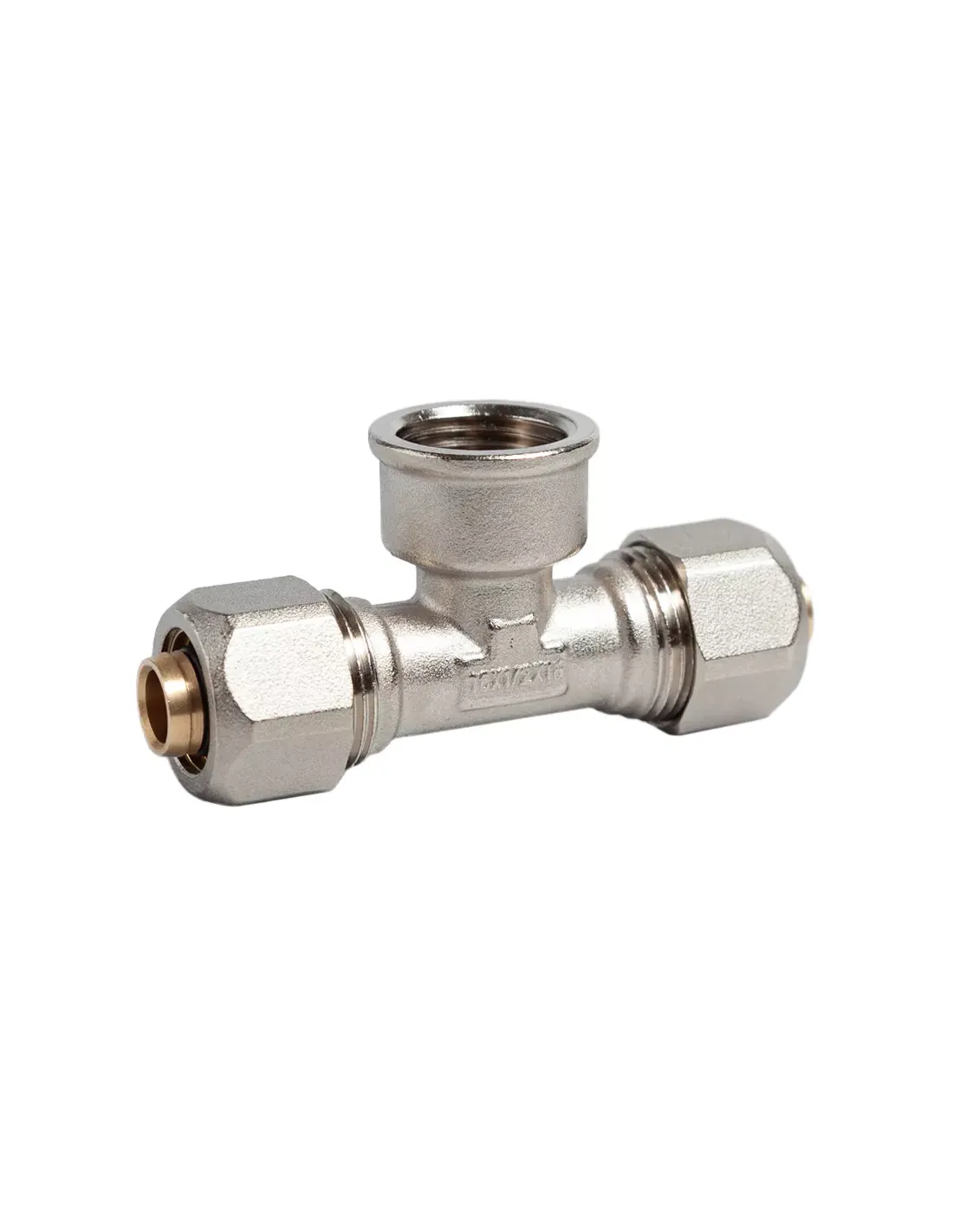 Трійник для металопластикових труб ITAL РВ 20х1/2х20 мм - призначений для з`єднання металопластикових труб при монтажі систем водопостачання та опалення, та для з`єднання з іншими елементами системи (трубопровідною арматурою), за допомогою трубної різьби. Такі трійники мають обтискне кільце всередині.