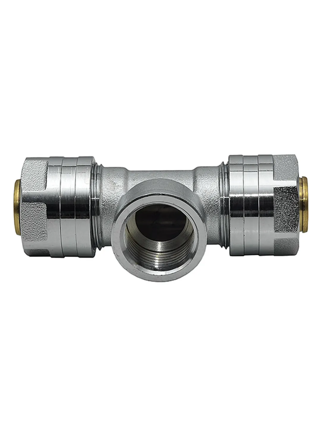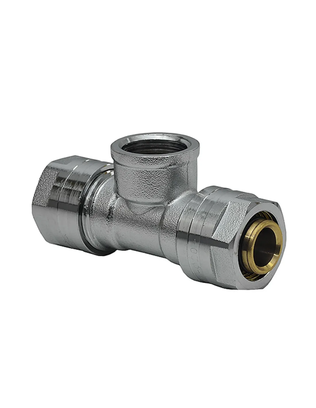 Трійник для металопластикових труб Raftec РВ 20х1/2х20 мм - призначений для з`єднання металопластикових труб при монтажі систем водопостачання та опалення, та для з`єднання з іншими елементами системи (трубопровідною арматурою), за допомогою трубної різьби. Такі трійники мають обтискне кільце всередині.