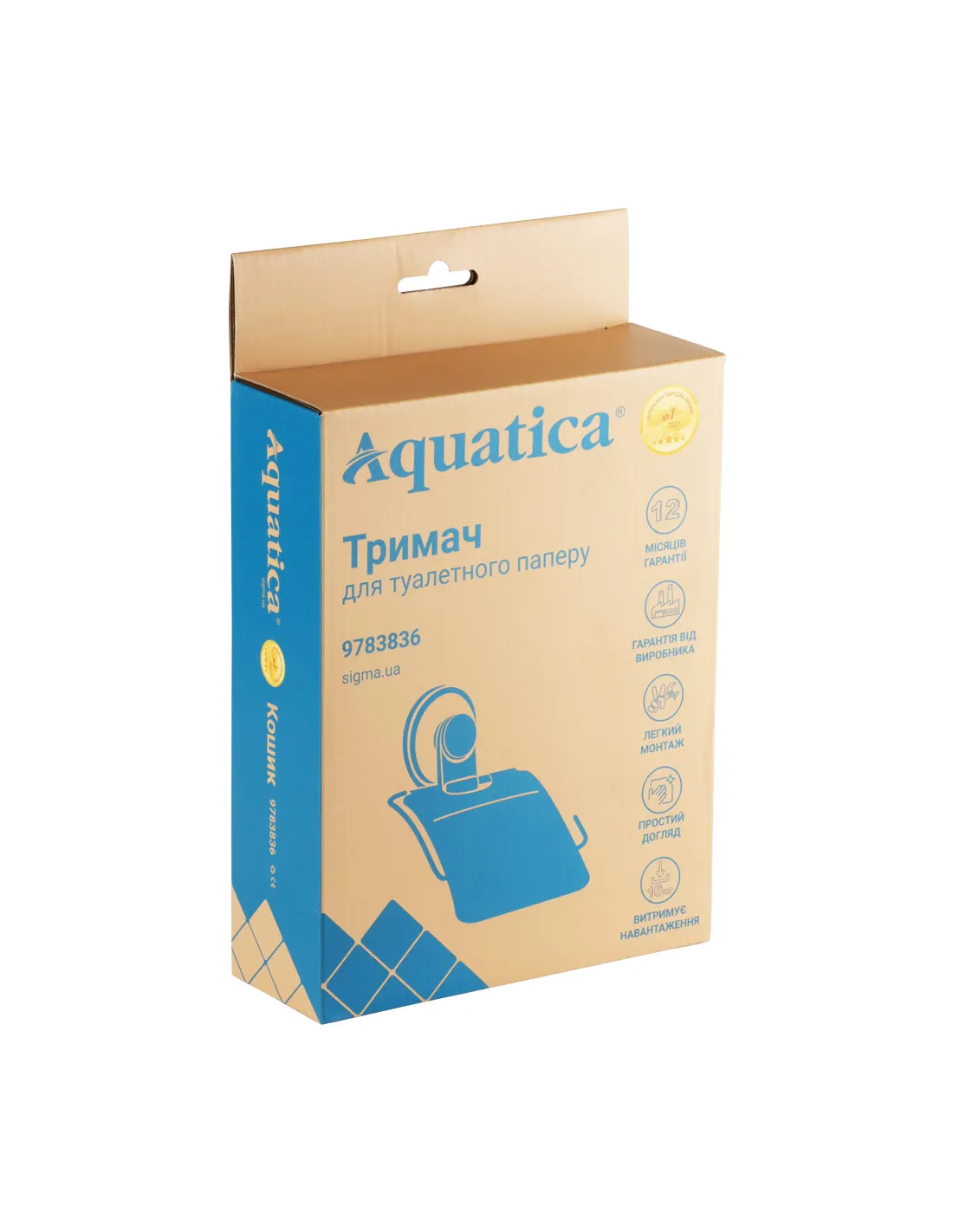 Тримач туалетного паперу Aquatica s38 9783836: паперовий рулон одягається на гачок-тримач. У цьому пристрої папір залишається на увазі, але прикритий кришкою від пилу. Місткість утримувача (рулон/листи) - 1 шт. Установка виготовляється на стіну у підвісному вигляді, кріплення - вакуумна присоска. На якій висоті монтувати пристрій вибирається індивідуально.