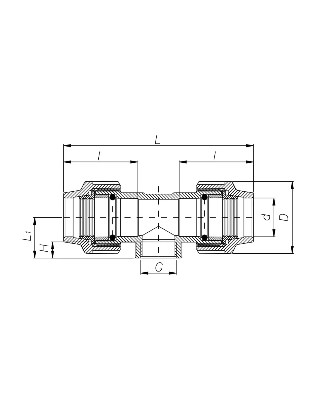 Технические характеристики тройника ITAL ПЭ 25х1/2 дюйма внутренняя резьба: