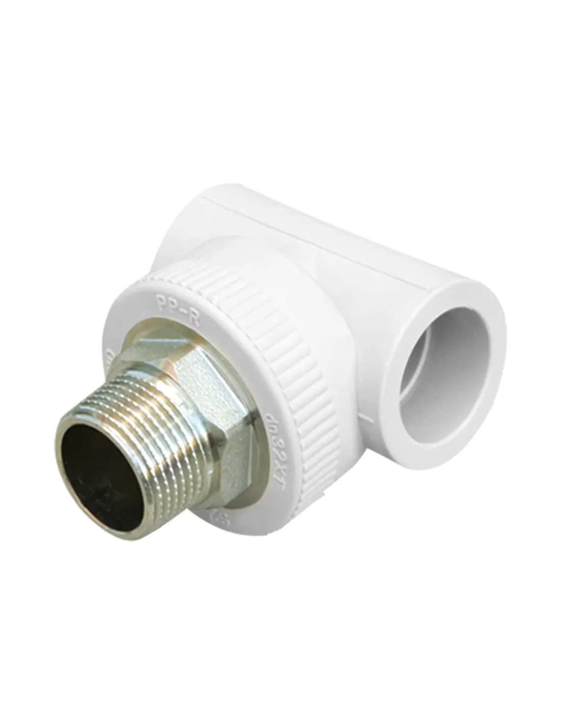 Корпус фитинга выполнен из высококачественного полипропилена (PPR PN20), а резьбовая вставка из латуни с наружной резьбой 1 дюйм надежно зафиксирована. Фитинг выдерживает максимальное рабочее давление 20 бар и подходит для использования в системах холодного и горячего водоснабжения, а также в отоплении.