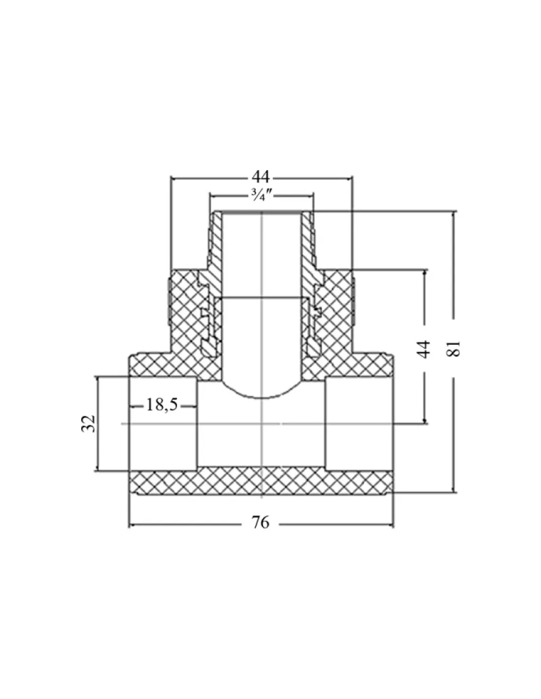 Технические характеристики тройника НР Blue Ocean 32х3/4х32: