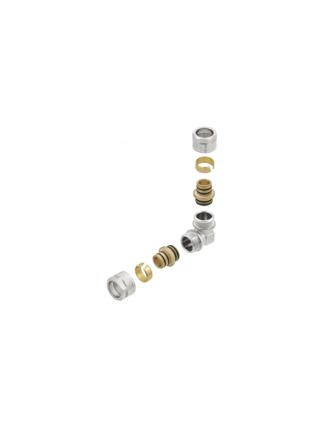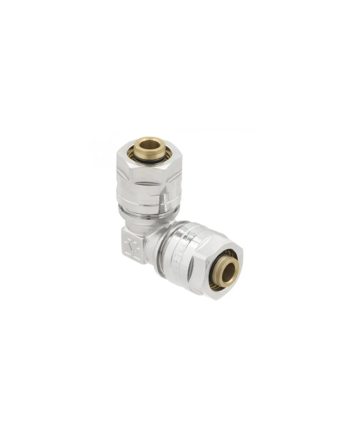 Уголок обжимной Raftec UR-1616 ф 16х16 мм применяется в системах водоснабжения и отопления для соединения металлопластиковых труб под углом 90 градусов в качестве соединительной арматуры.