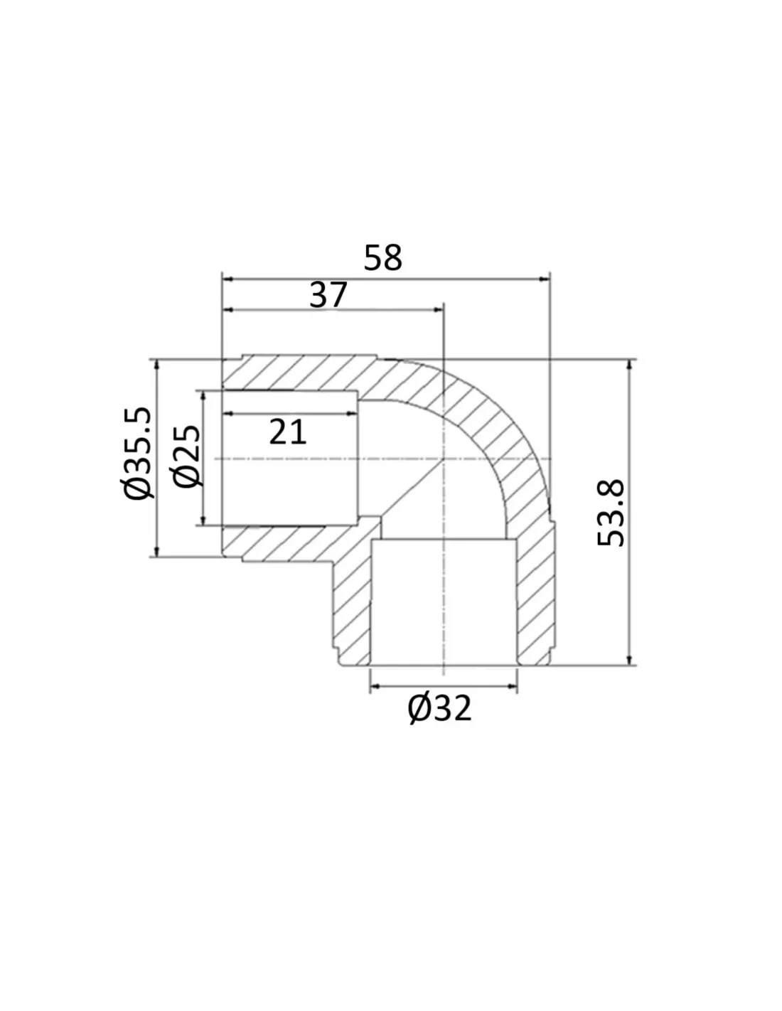 - Сочетает поворот на 90° и редукцию (32 на 25 мм);