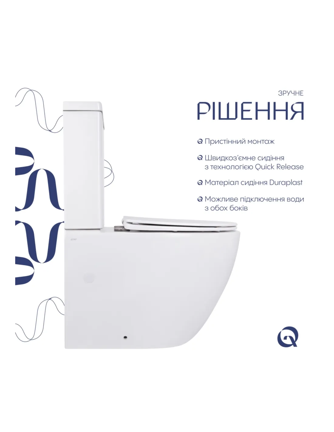Переваги унітазу безободкового компакт Q-Тap Jay Eco Ultra Quiet QTJAY27W48749 White: