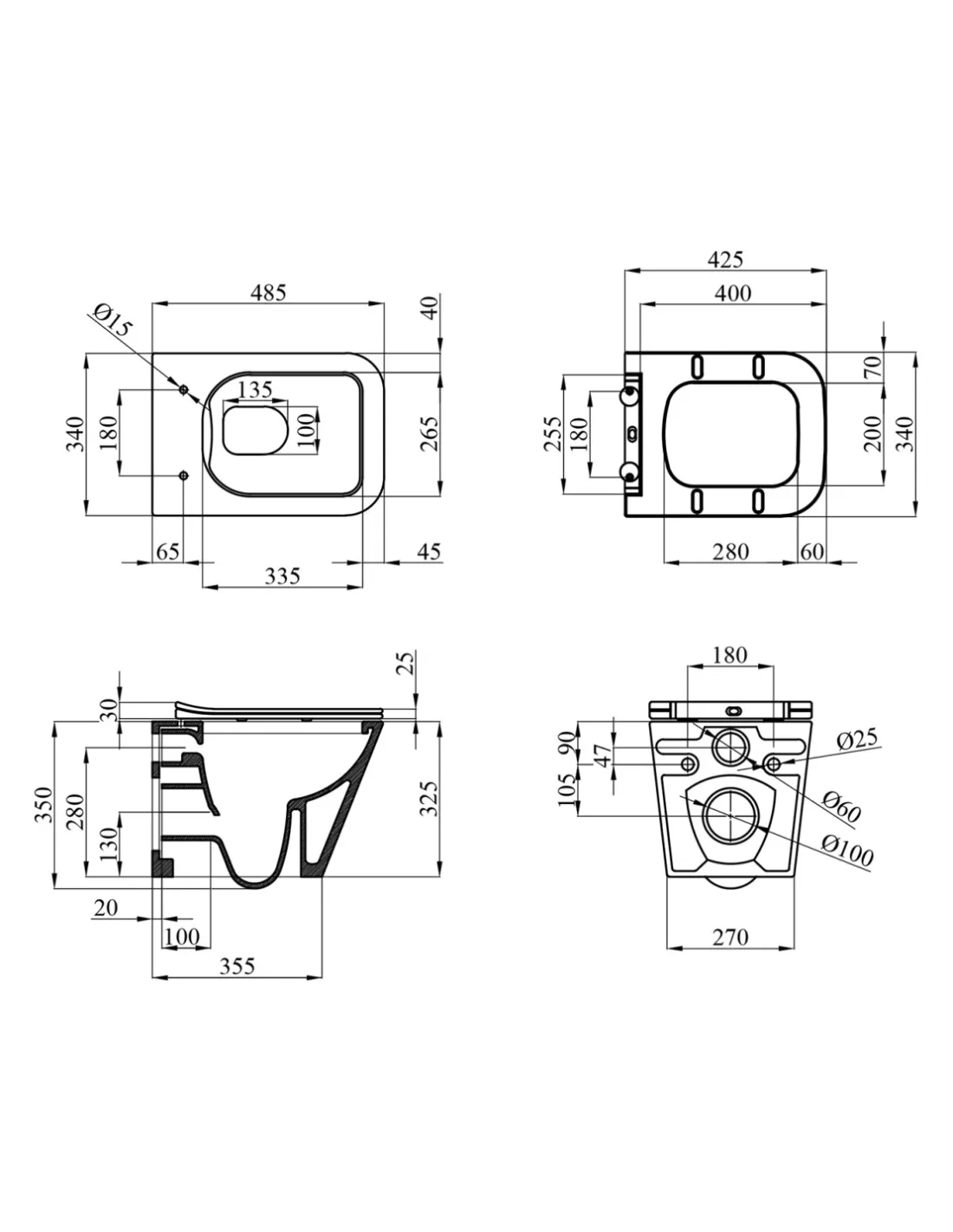 - Габарити унітазу (ДхШхГ): 340х350х485 мм;