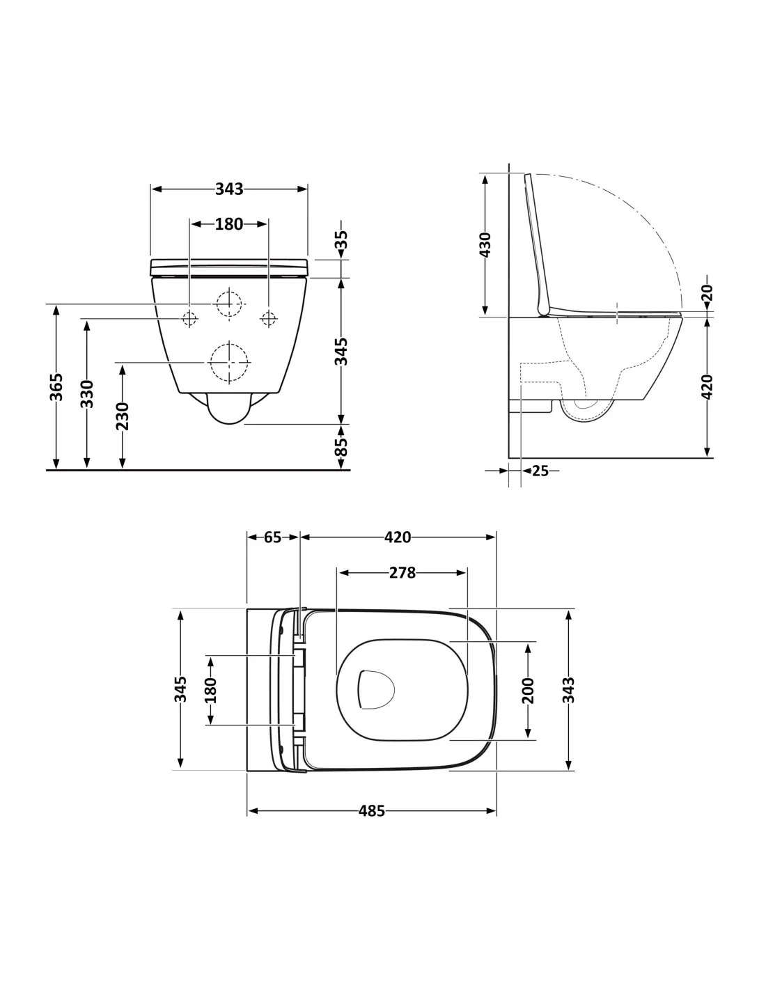 - Габариты унитаза (ДхШхГ): 485×340×350 мм;