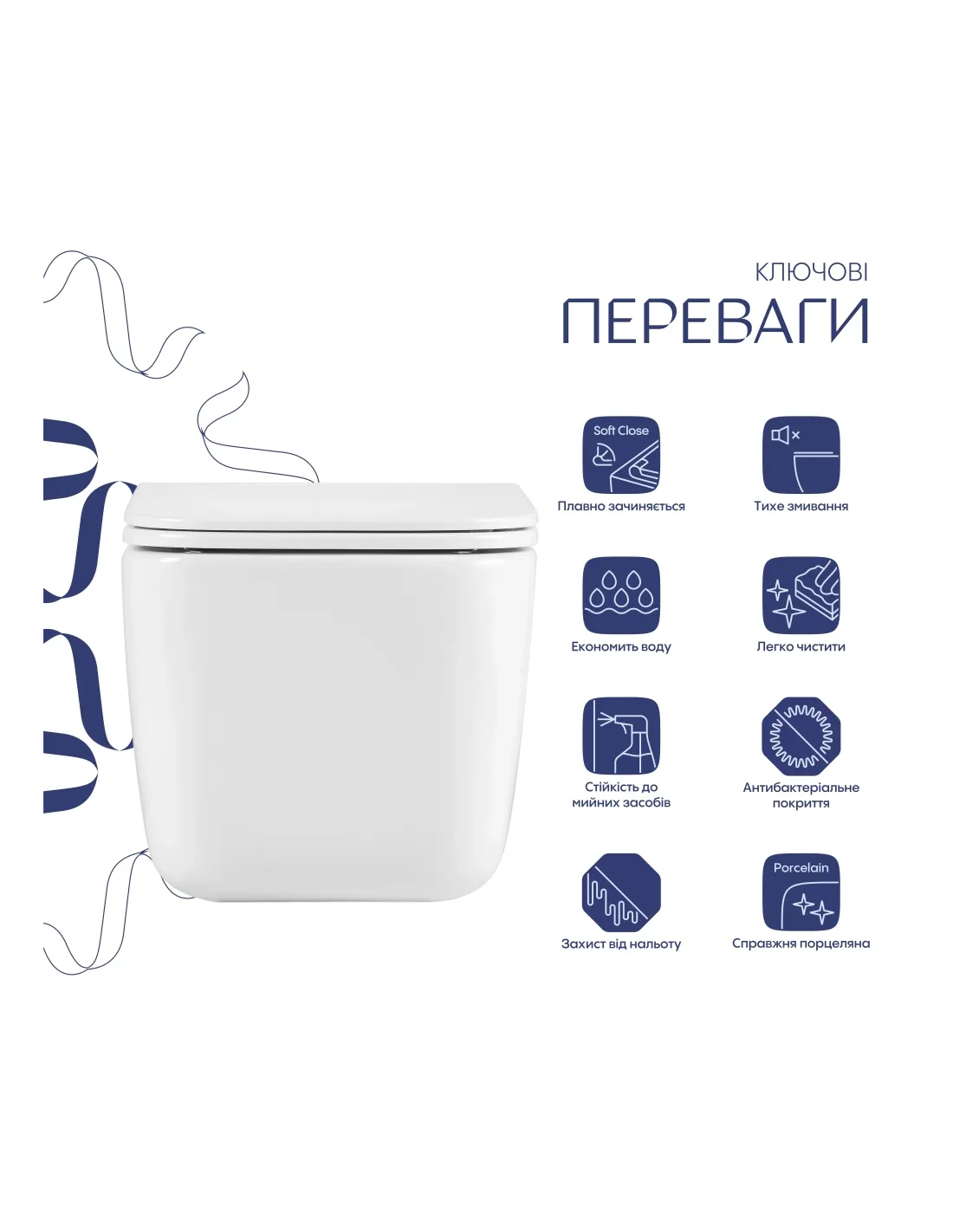 Унитаз безободковый подвесной Q-Tap Gemini Ultra Quiet QTTAU26W49119 оснащен сиденьем с функцией Soft-close, которая позволяет избежать постоянных ударений и неприятного стука во время закрытия. Такая технология осуществляет плавное опускание крышки, медленное и бесшумное, что повышает уровень комфорта и простоту эксплуатации.