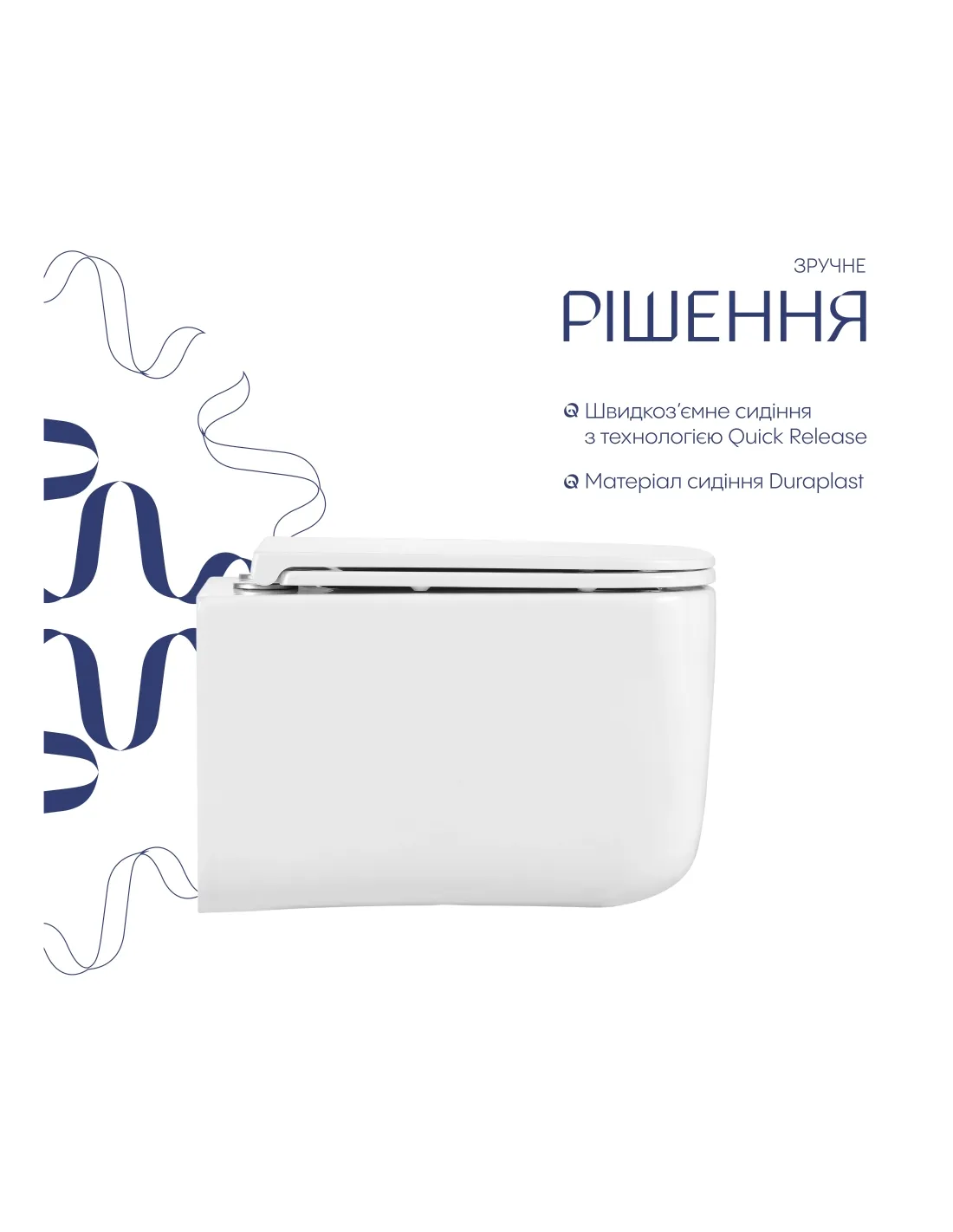 Унитаз безободковый подвесной Q-Tap Gemini Ultra Quiet QTTAU26W49119 оснащен системой Quick Release, позволяющий снять сиденье за секунды без инструментов, что позволяет легко, удобно и быстро полностью удалить загрязнения, предотвращая размножение бактерий в зоне крепления.