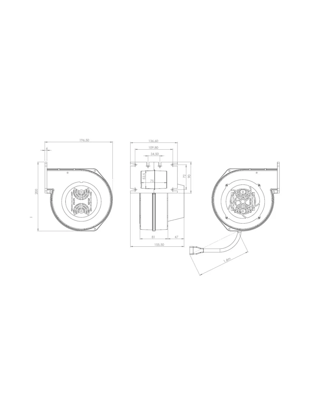 Вентилятор котла Thermo Alliance TA100 также может использоваться для совместной вентиляции помещений и оборудования. Конструкция вентилятора состоит из двух частей: алюминиевого корпуса, который крепится к внешнему ротору двигателя, крыльчатки из жаропрочного пластика, которая прикрепляется непосредственно к валу двигателя. Входящее отверстие защищено сеткой. Выпускное отверстие заканчивается фланцем с отверстиями для крепежа.